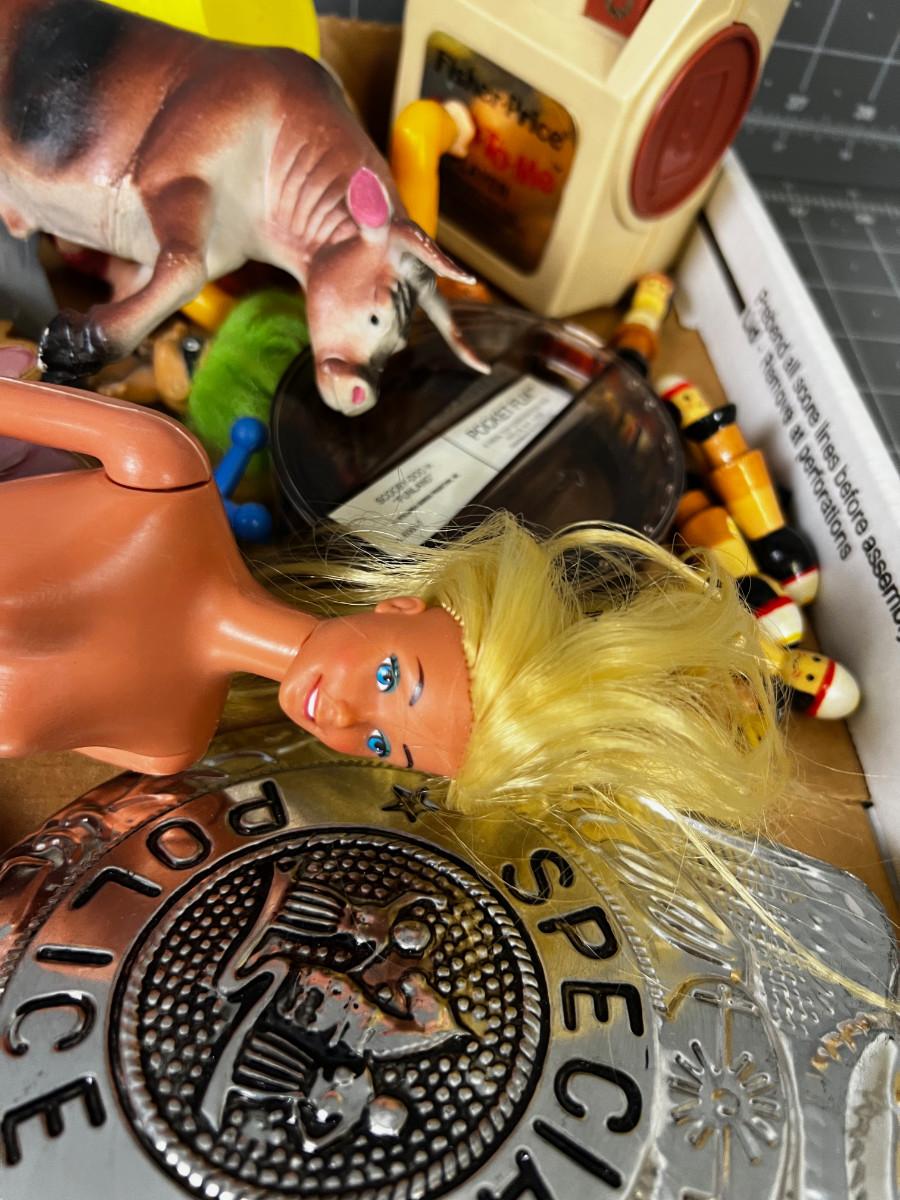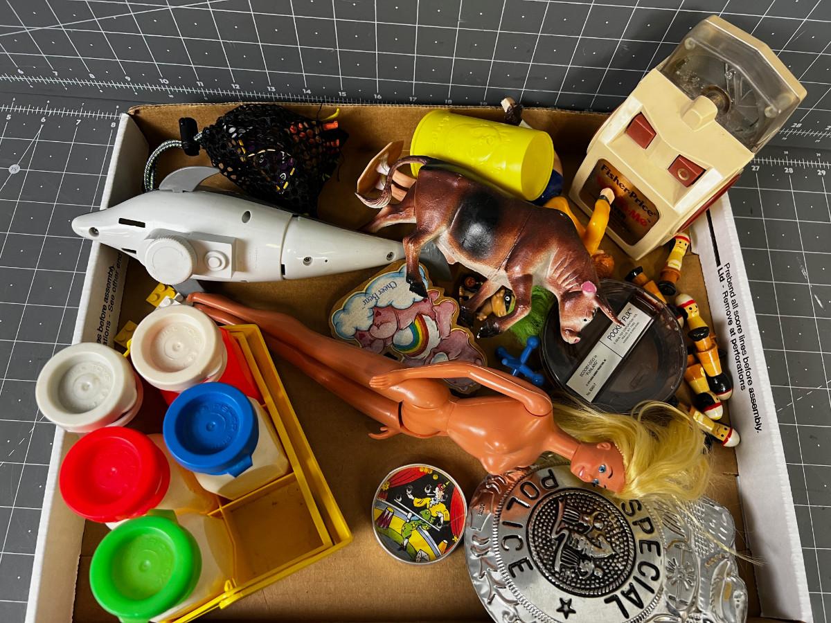 Used and Still Usable! Barbie Doll, Dolphin, milk Bottles.