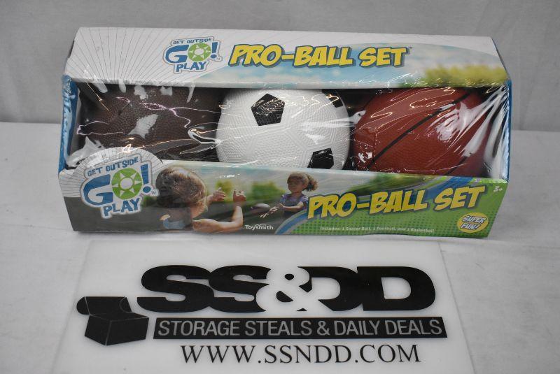 Toysmith Get Outside GO Pro-Ball Set, Pack of 3 (5-inch soccer ball,65-inch football and 5-inch basketball) - New