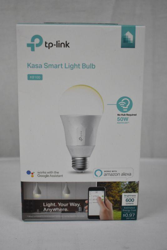 TP-Link KB100 A19 Smart Light Bulb, 50W Dimmable White LED. Open Box - New