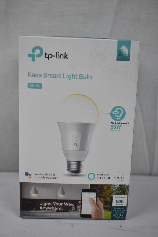 TP-Link KB100 A19 Smart Light Bulb, 50W Dimmable White LED, 1-Pack. Open Box - New