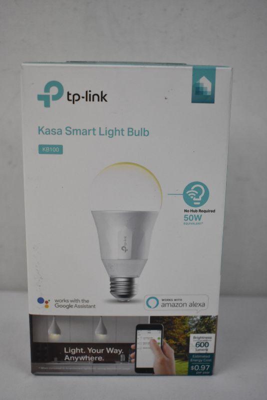 TP-Link KB100 A19 Smart Light Bulb, 50W Dimmable White LED, 1-Pack. Open Box - New