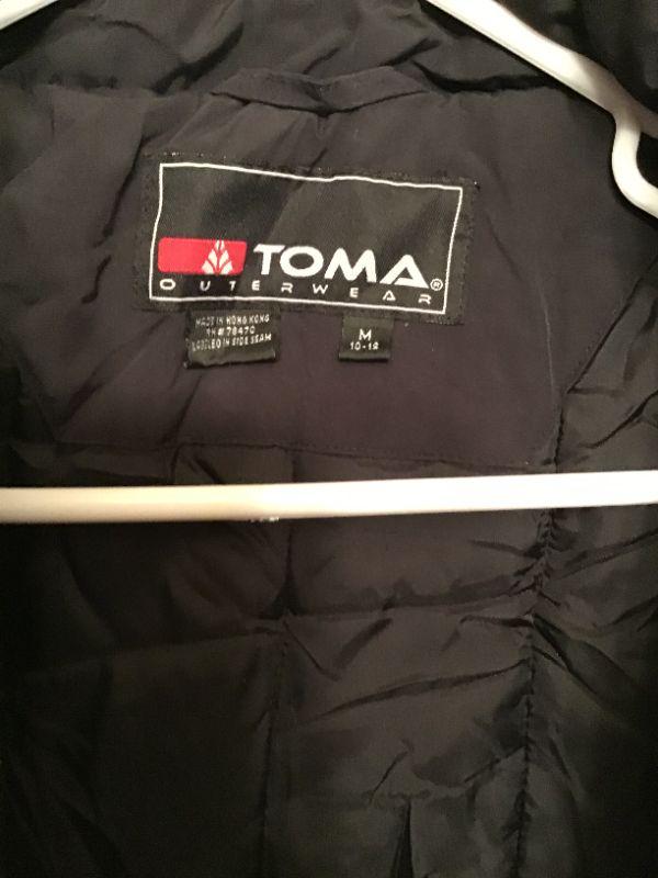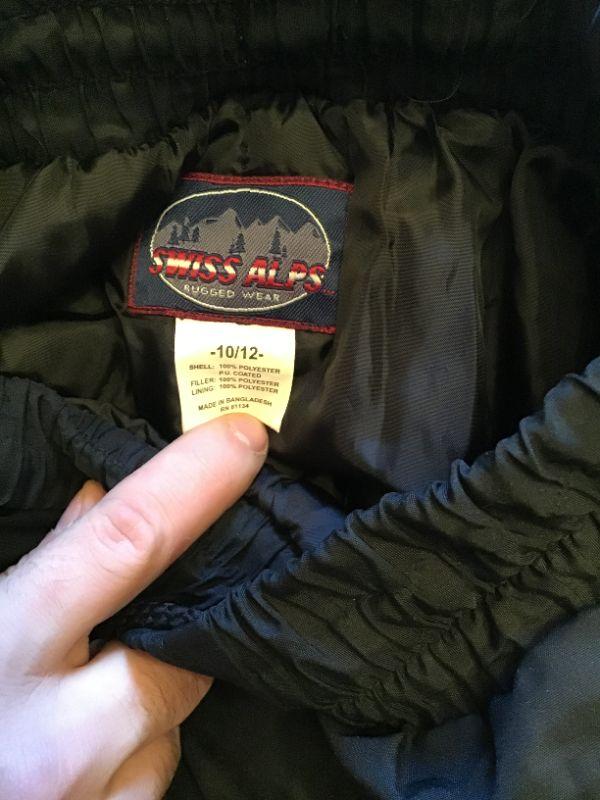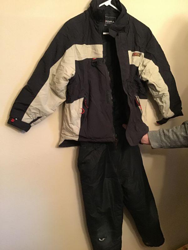 Toma outerwear coat boys size M (10-12); Swiss Alps snow pants boys size 10-12 (note: hole in knee)