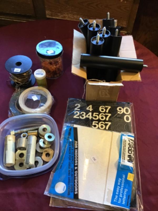 #tr52.  Furniture legs, wire, tape, letters, large pins