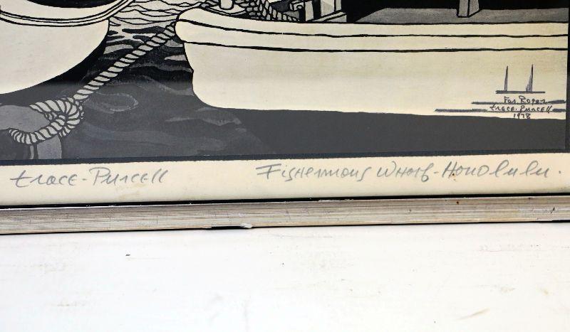 Trace Purcell Signed Litho Hawaii Honolulu Fisherman's Wharf c.1978 - A-031