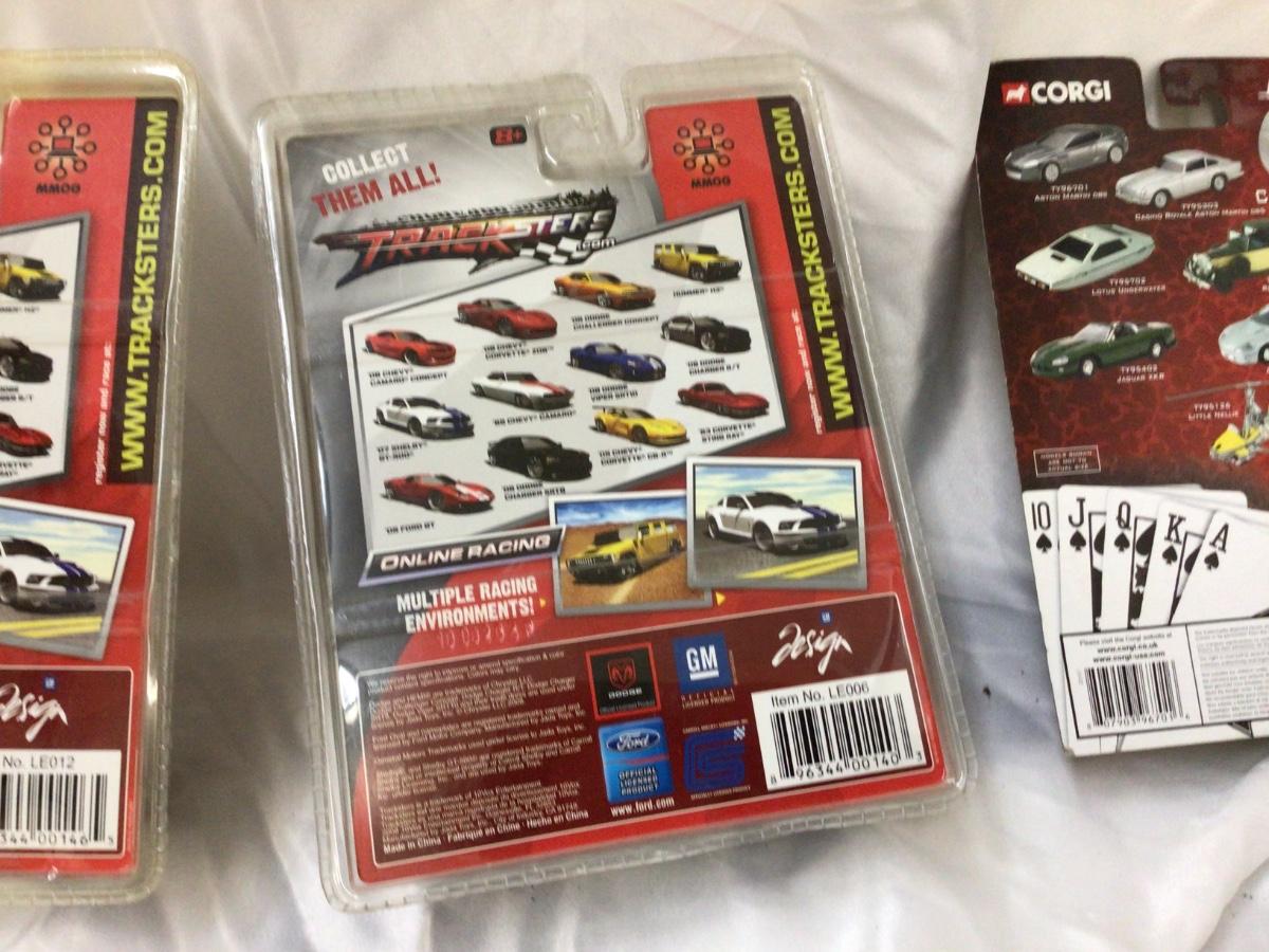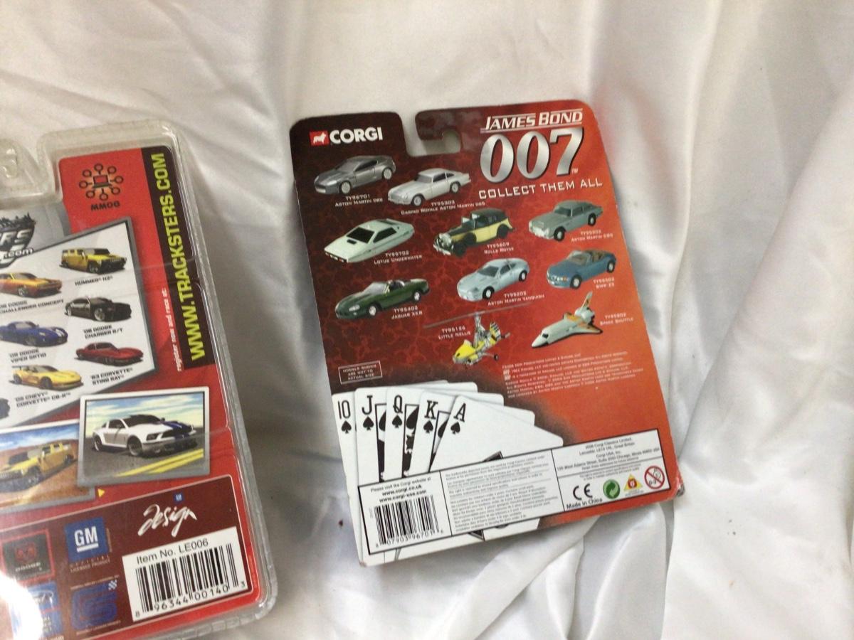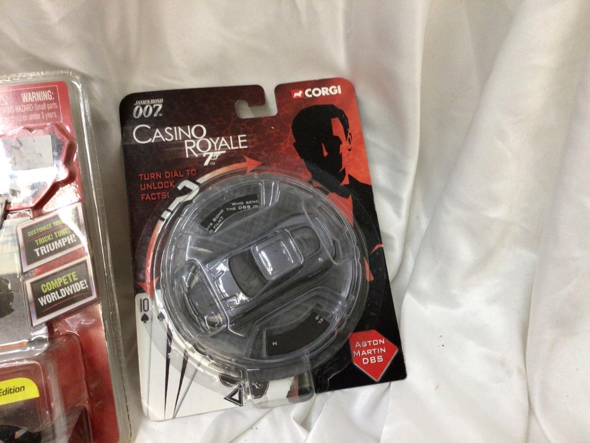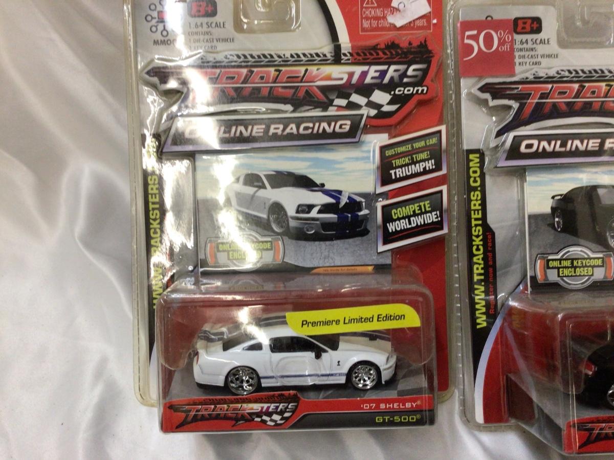 You get two Trackster cars one Dodge Charger the other is GT 500. The Casino Royal car is Aston Martin. All are new in packaging.
