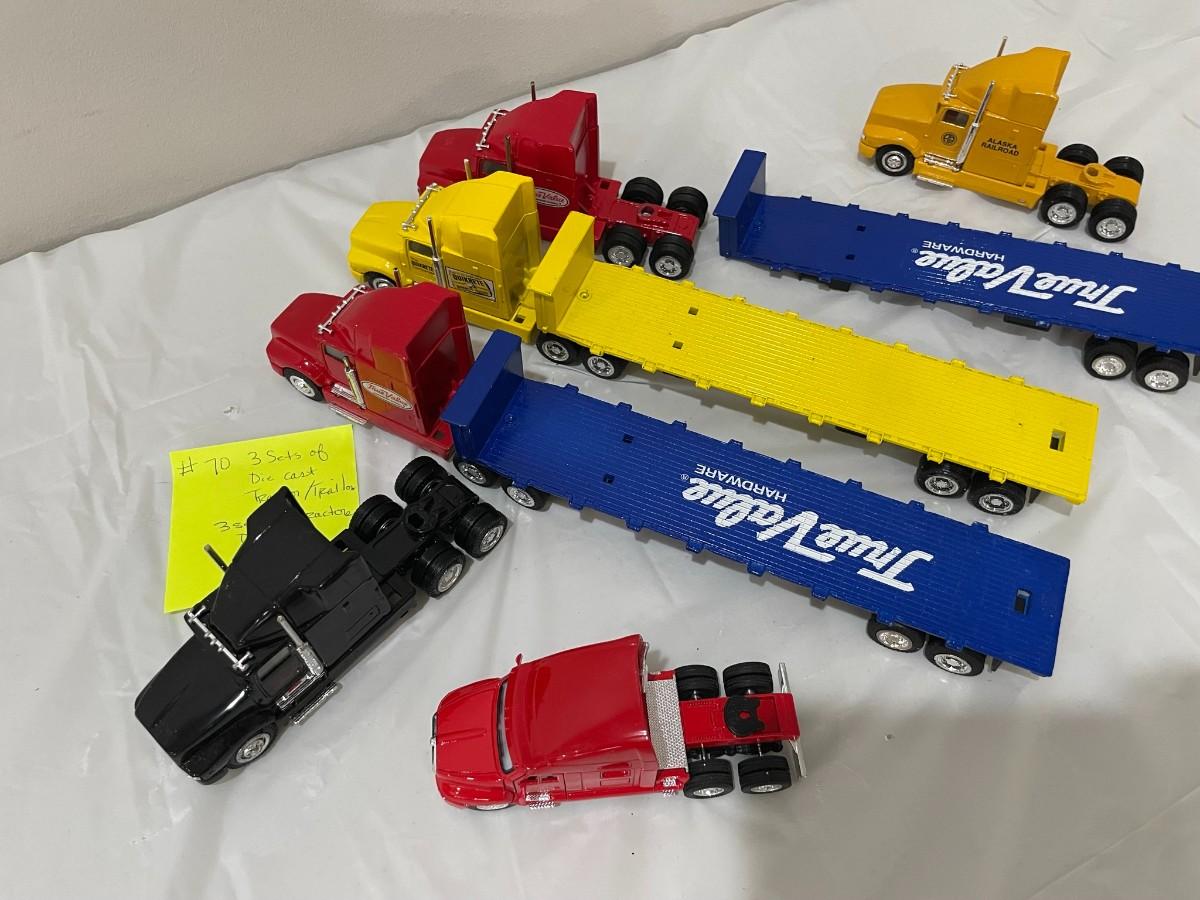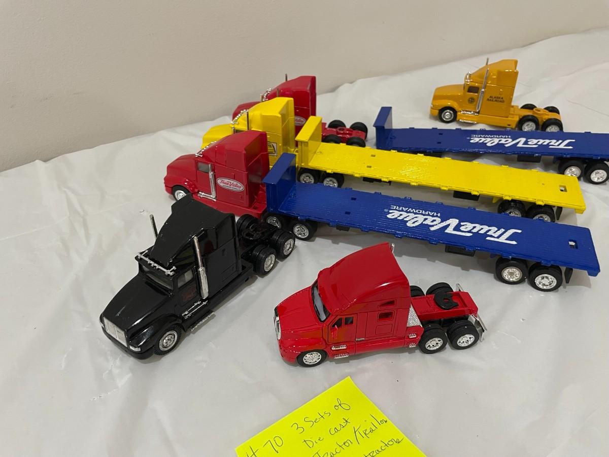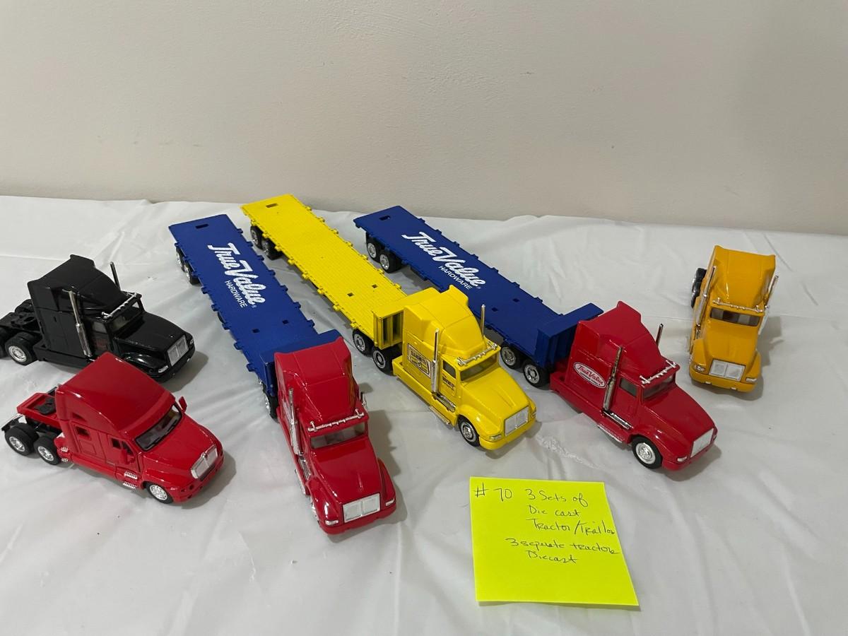 3 Sets of Diecast Tractor/Trailers Sets (1 item appears to be broken), 3 Diecast Tractors
