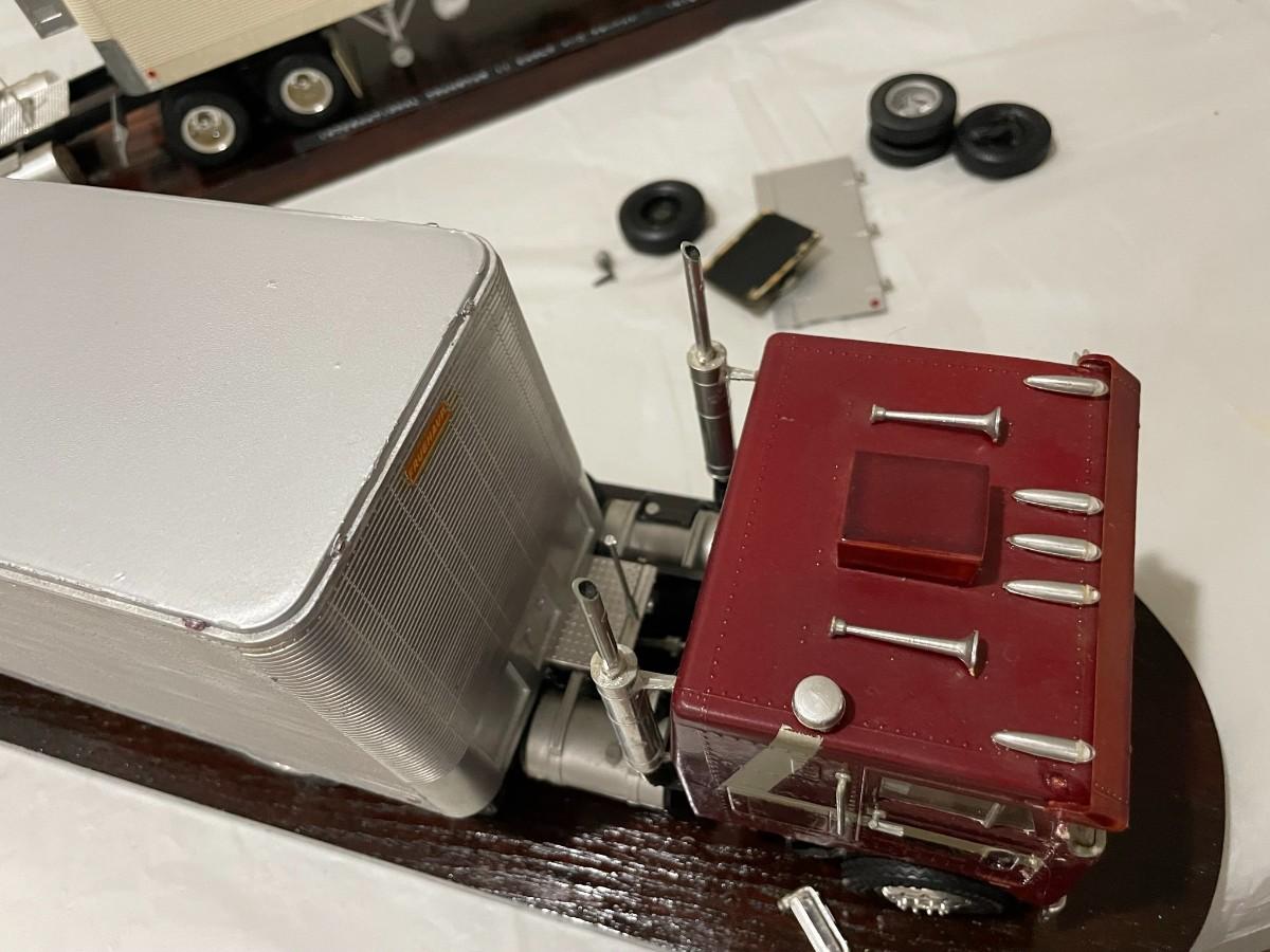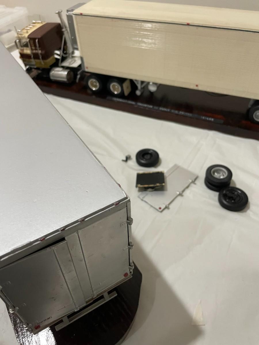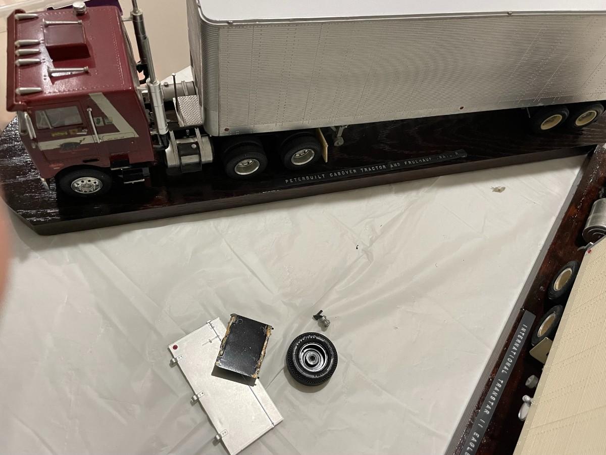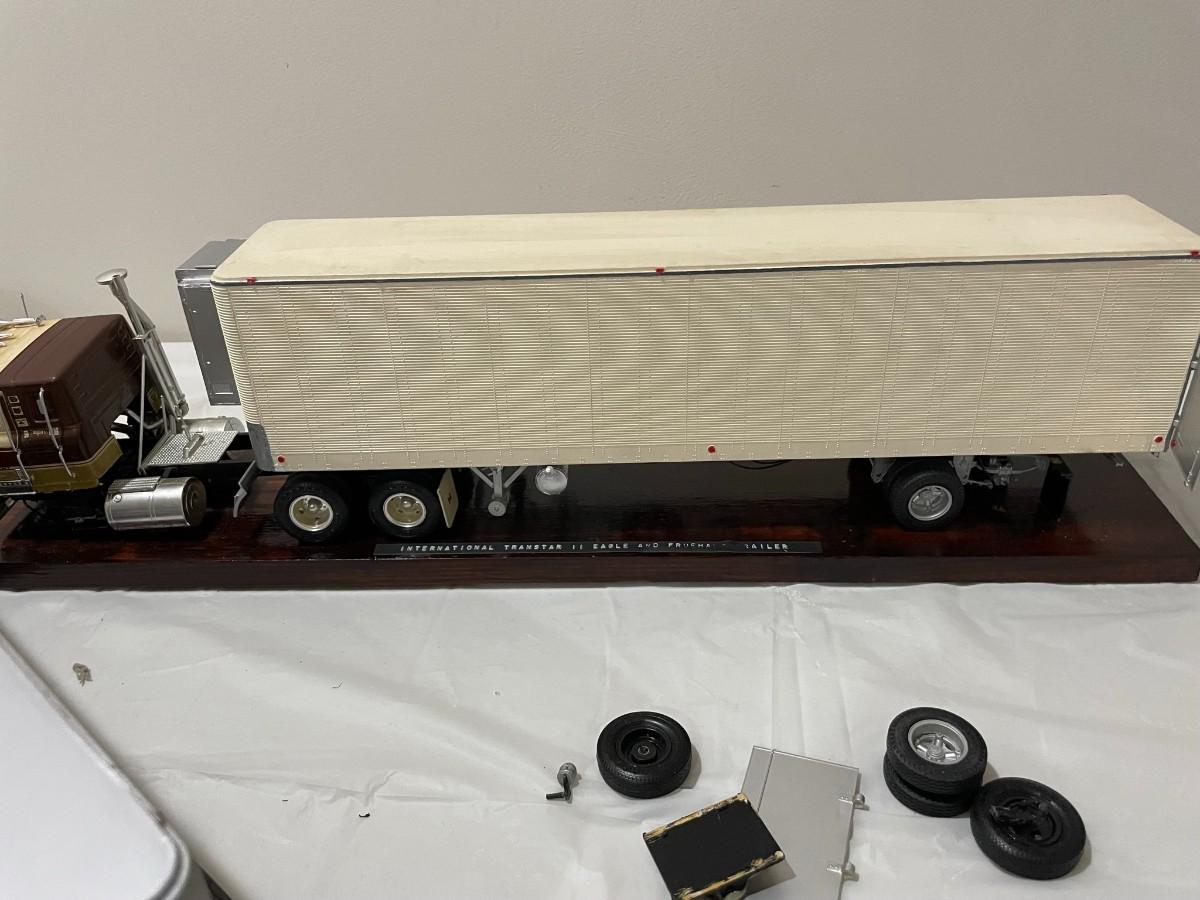 2 Tractor/Trailer Sets mounted on wood (Broken or Missing pieces), 2 Model Trailer Kits (New)