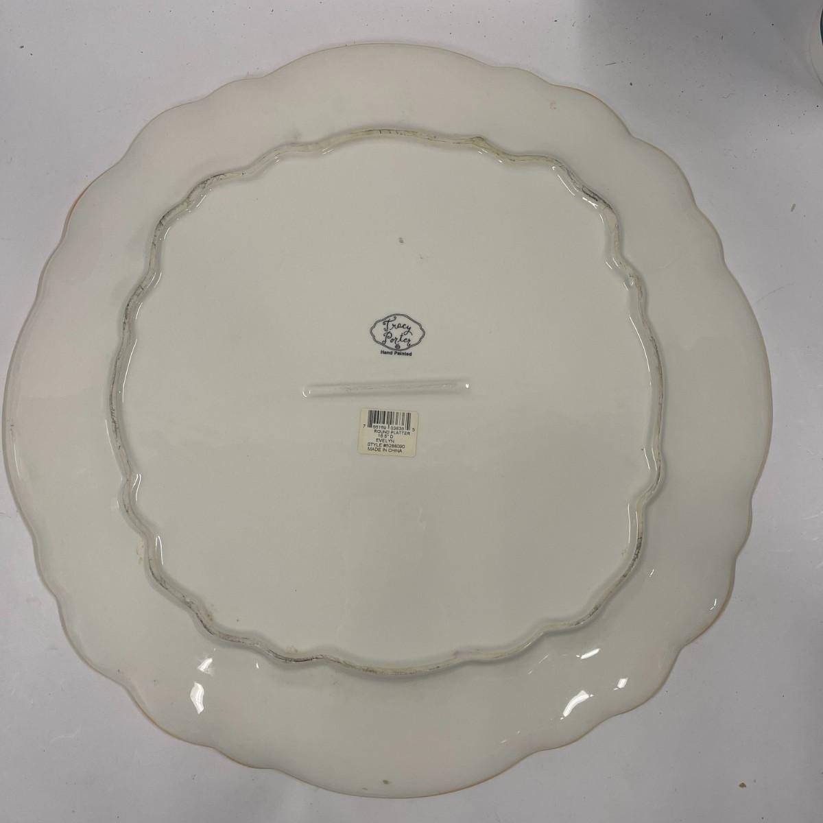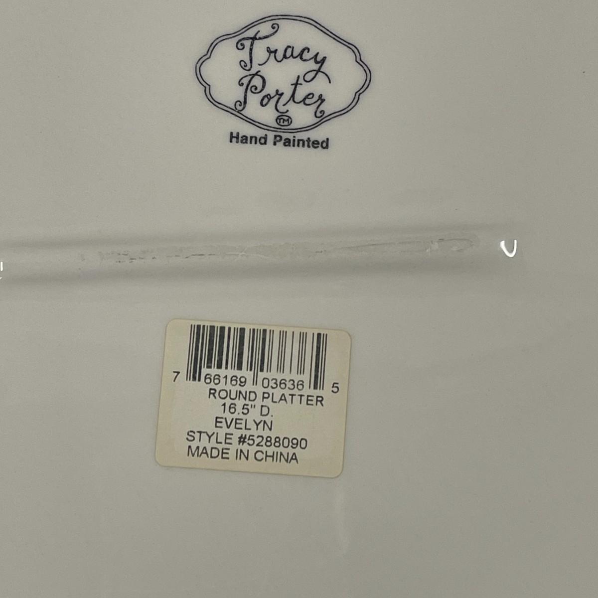 Tracy Porter 16.5" round platter, Evelyn pattern. Has crazing throughout.