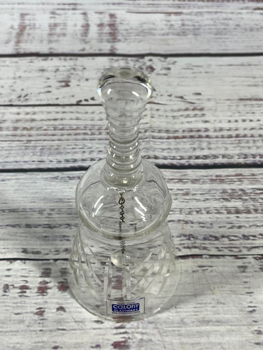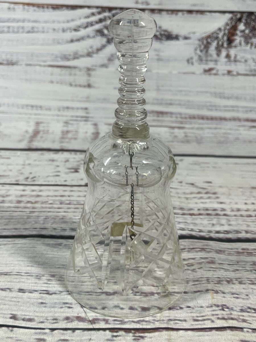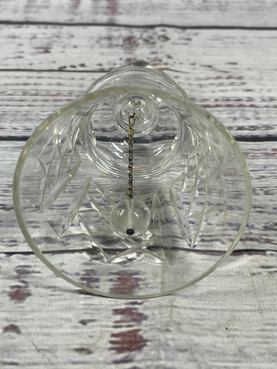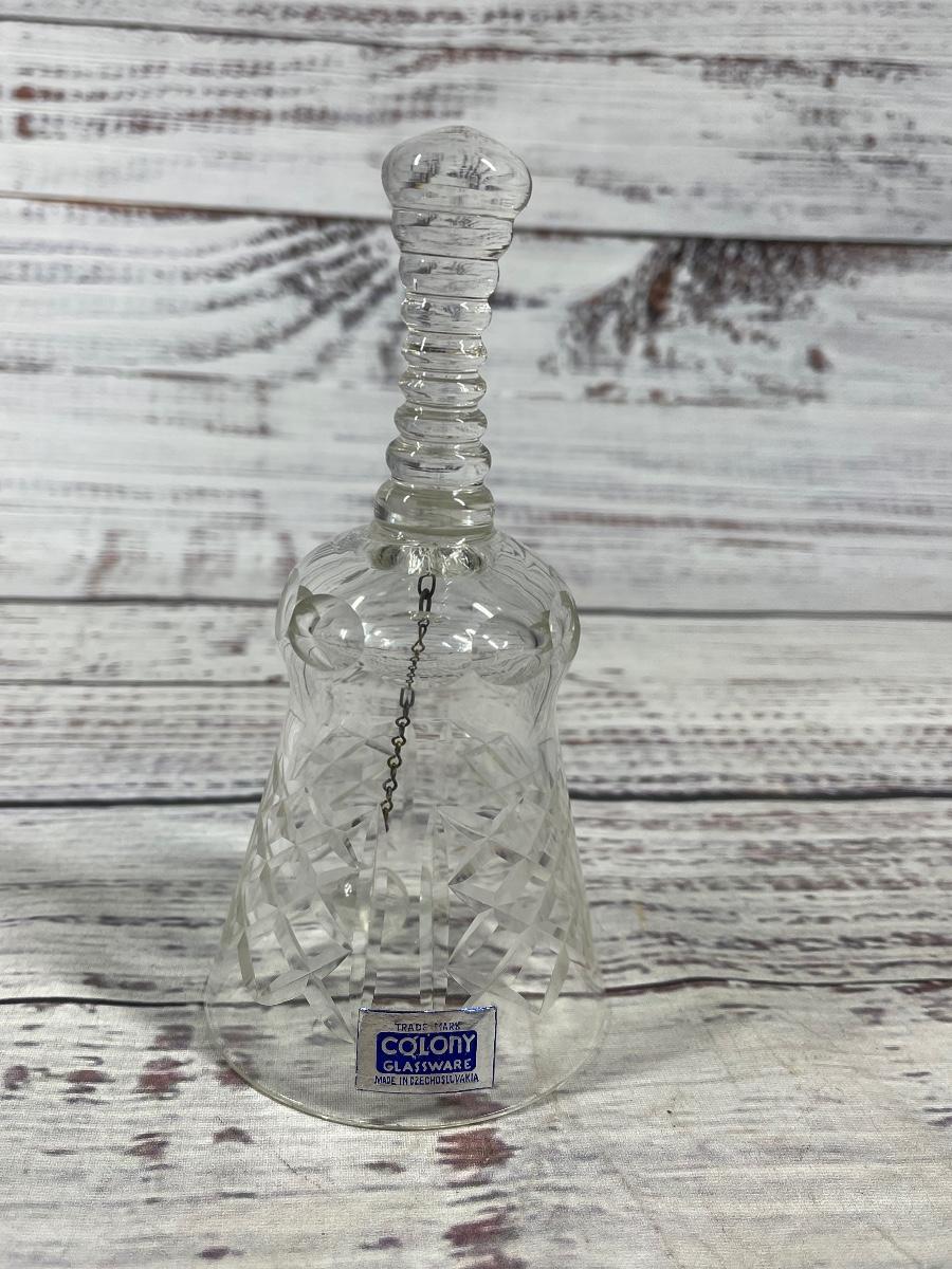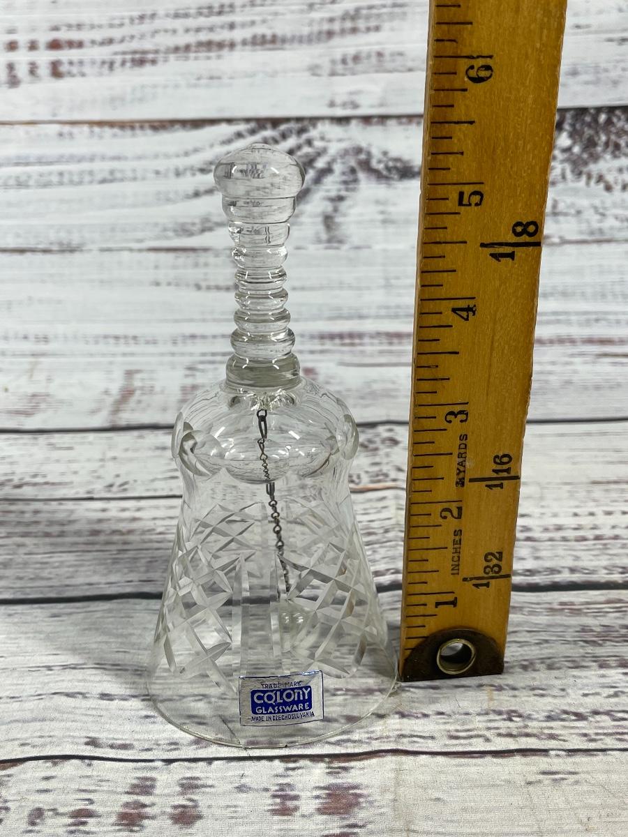 Item is in great condition. The bell is made out of crystal glass and was made in Czechoslovakia. Item is approximately 5” tall.