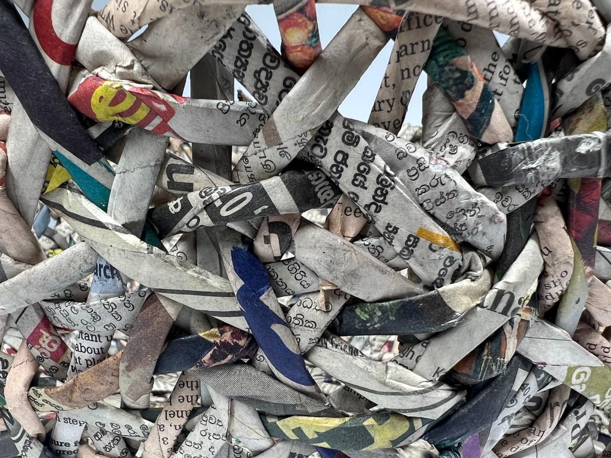 Trader Joes's Hand Woven Recycled Newspaper Basket