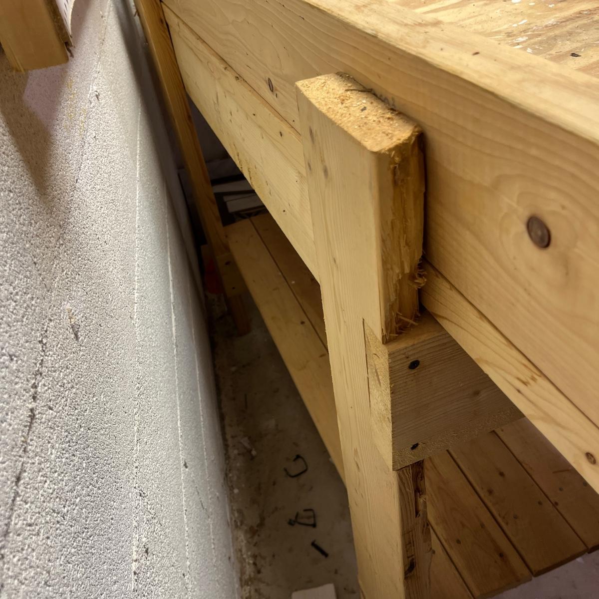 Lot includes a wooden Tradesman Workbench that measures 28" x 72" x 40"H. Bench has paint and drill holes on top, see pictures. Bench is in basement and will need to be walked around the outside of condominium when picked up.