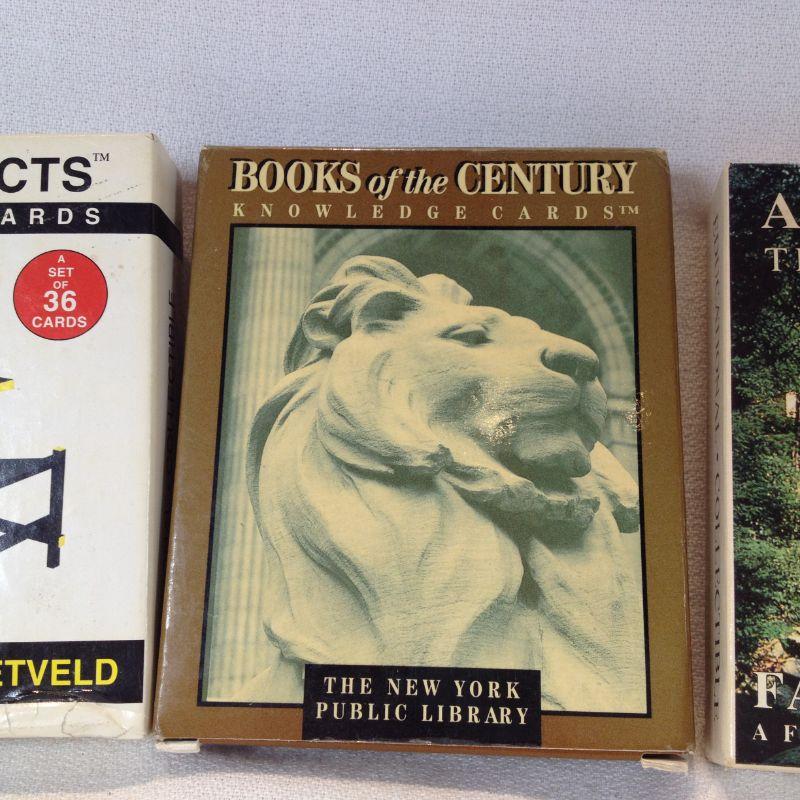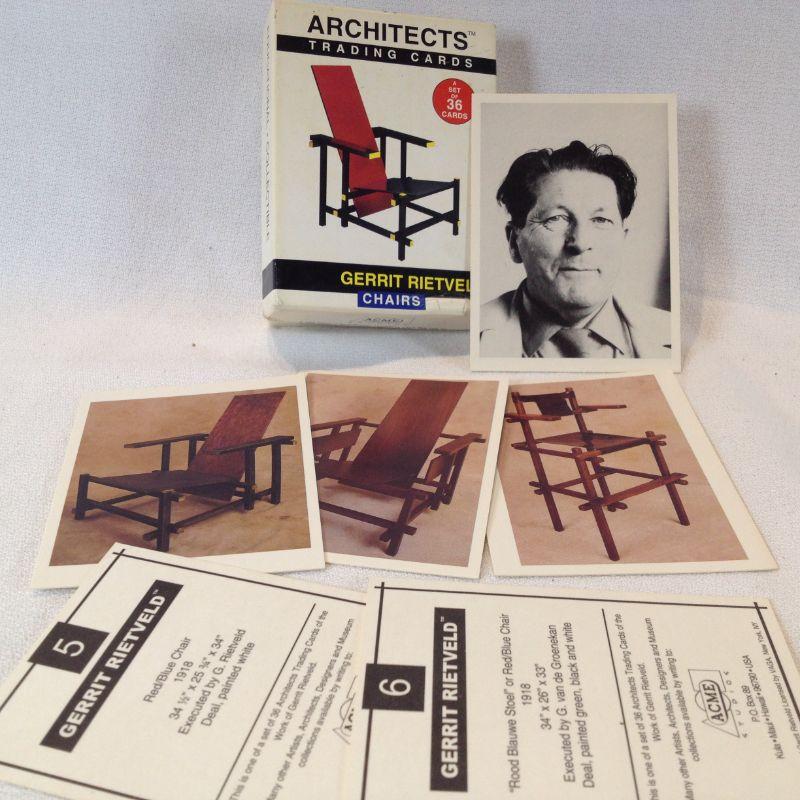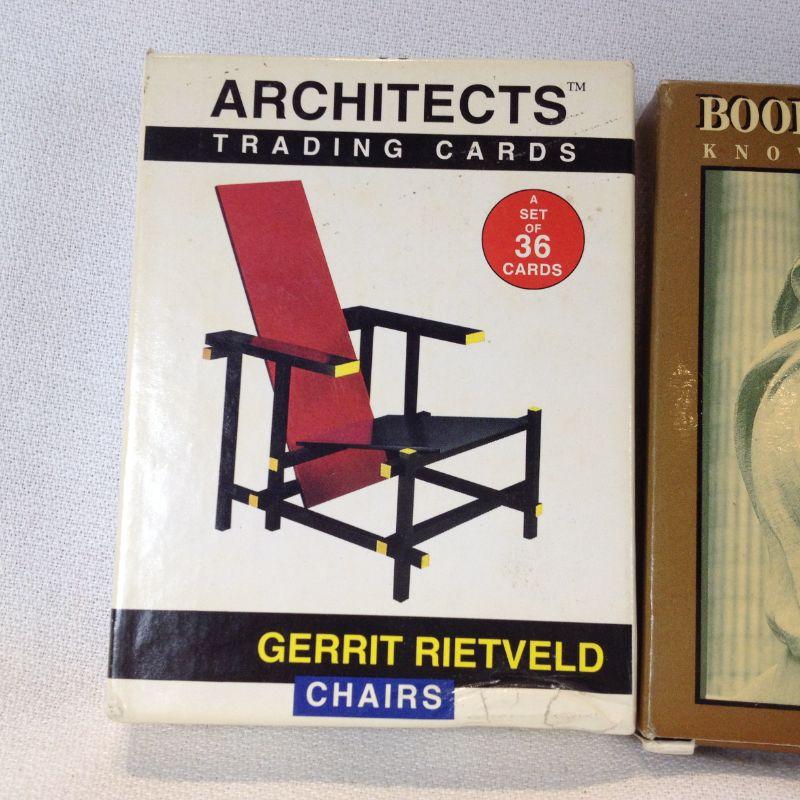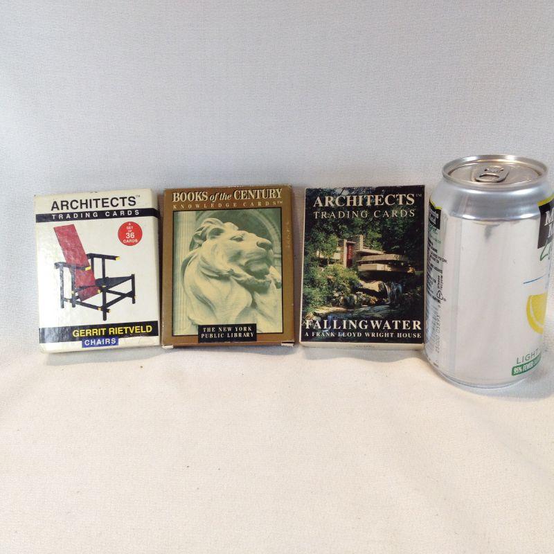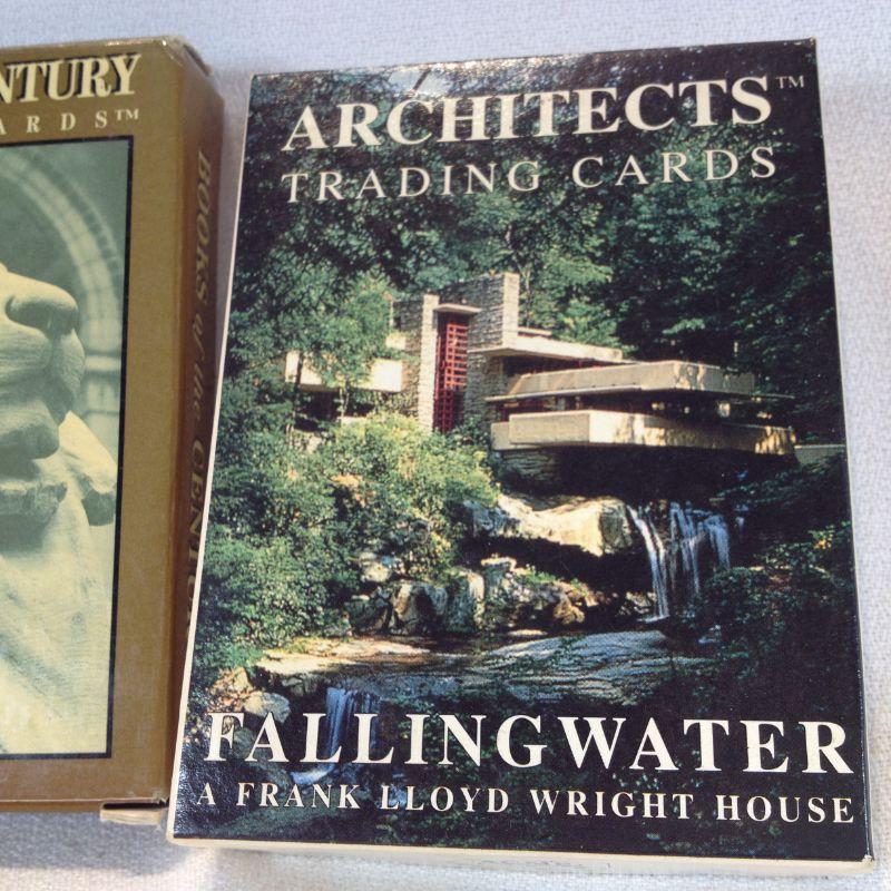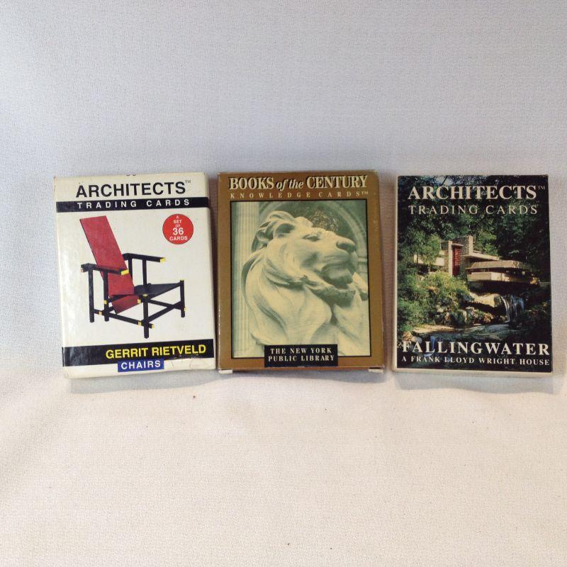 This lot is a grouping of 2 complete sets of Architects Trading Cards: Fallingwater by Frank Lloyd Wright and Gerrit Rietveld -Furniture. The third set of cards are Knowledge cards that are still sealed in plastic. All sets are complete and in very good condition. The starting bid is $10.00.