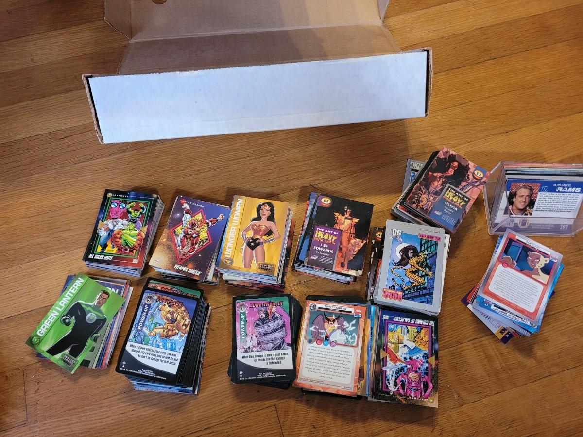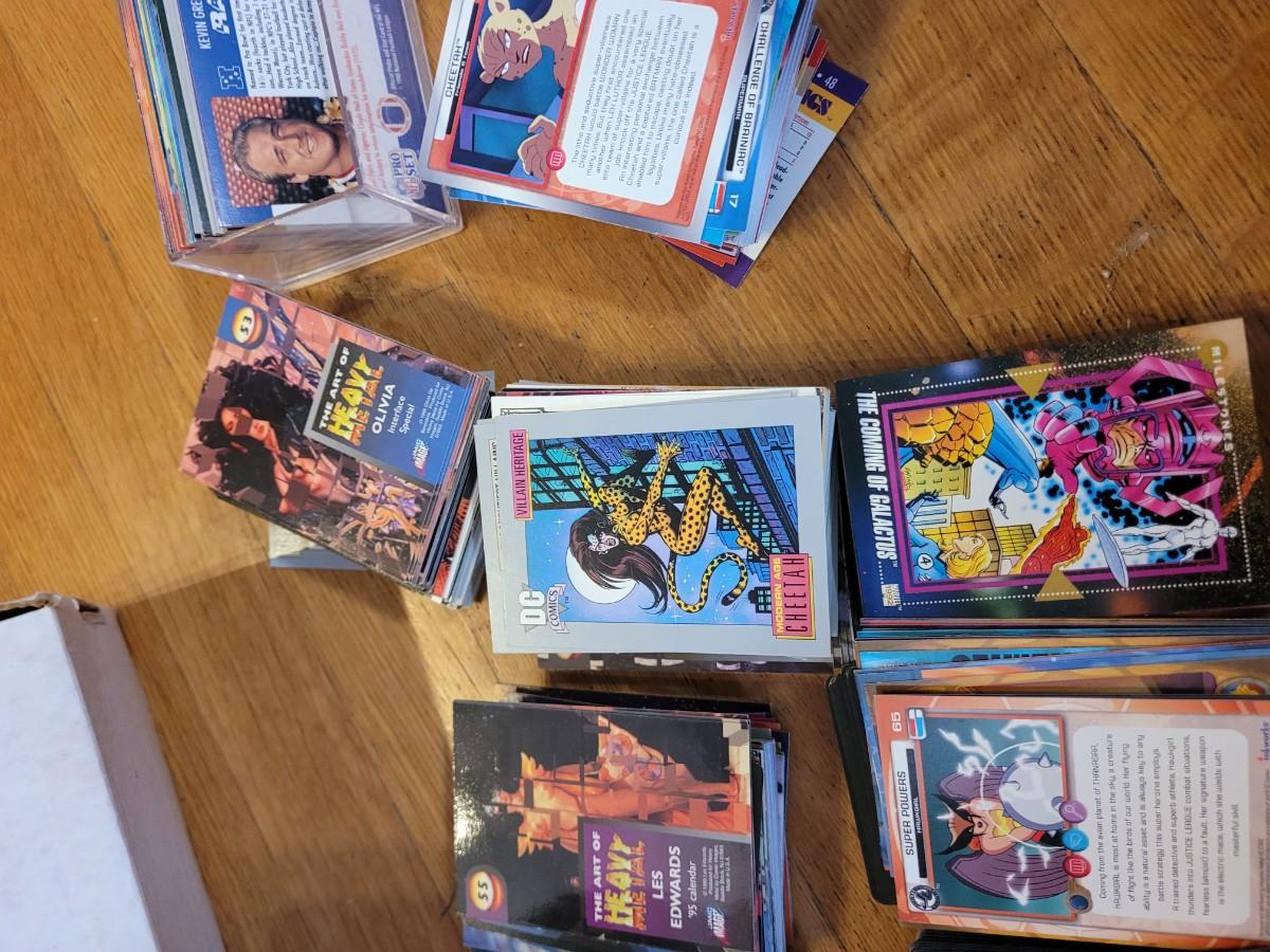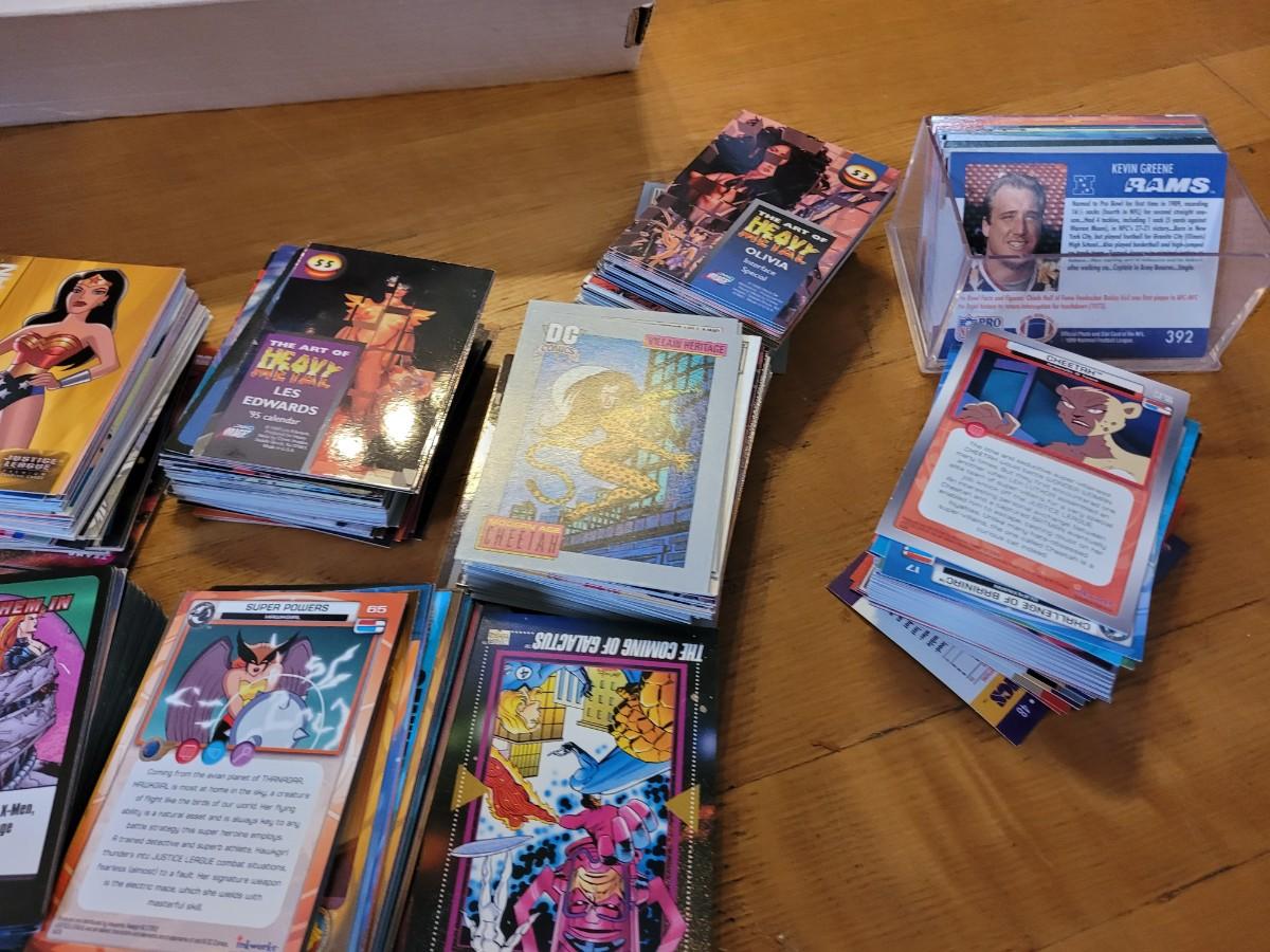 Sports and collectable cards, household items, records, stereo equipment, an assortment of cool items.