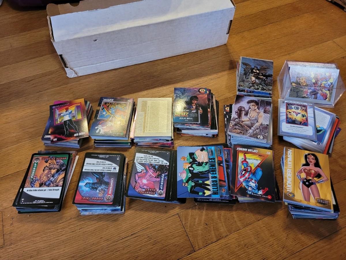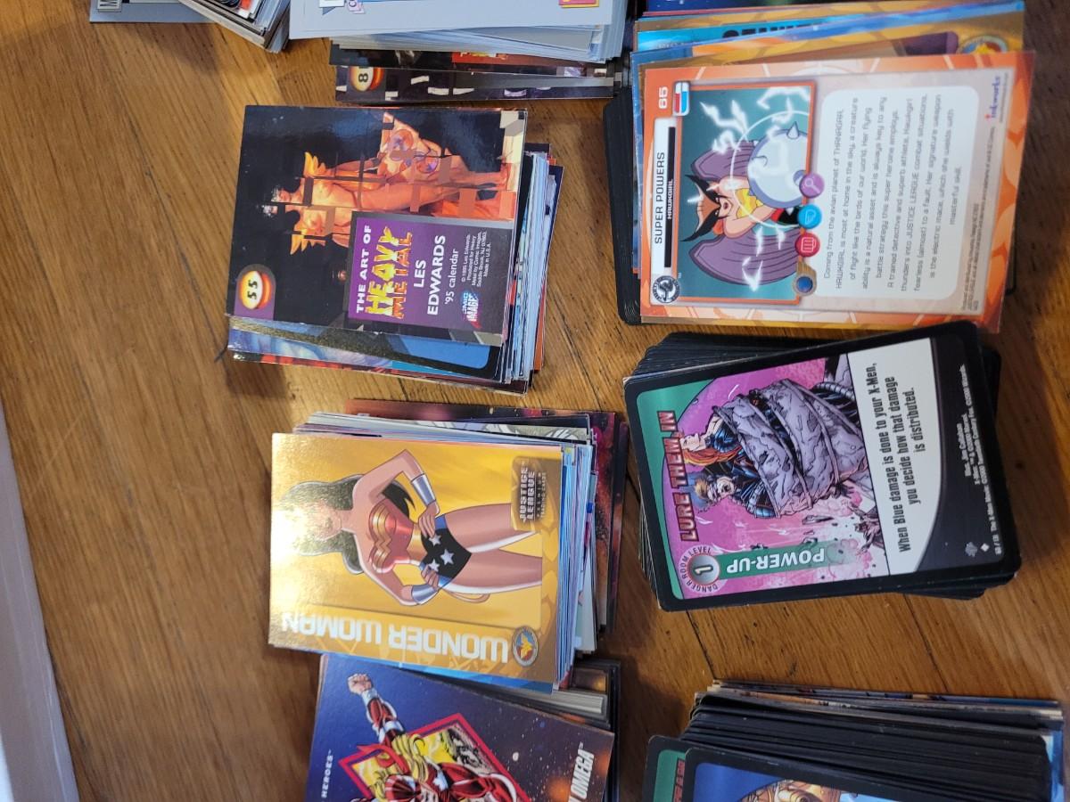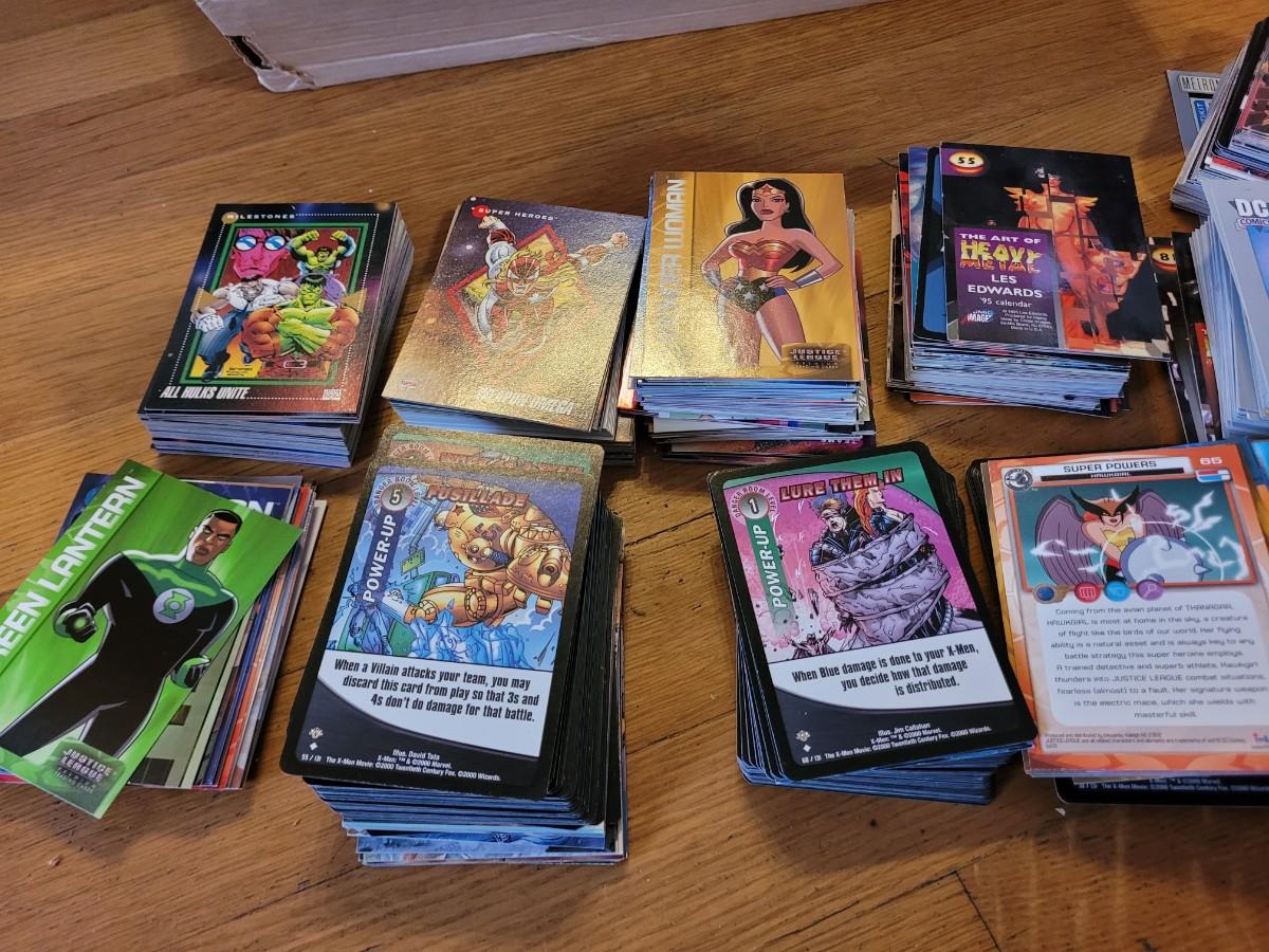 Sports and collectable cards, household items, records, stereo equipment, an assortment of cool items.