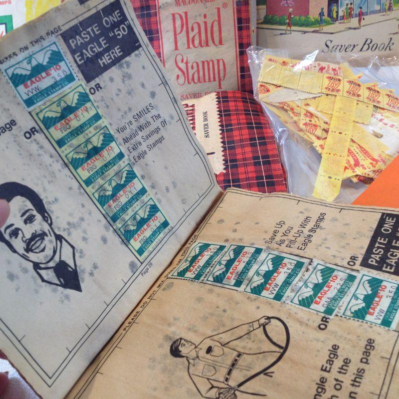 This is a large collection of vintage trading stamps and stamp books from all the major companies. Many of the books are already full. There are over 12 trading books and a bag of extras.