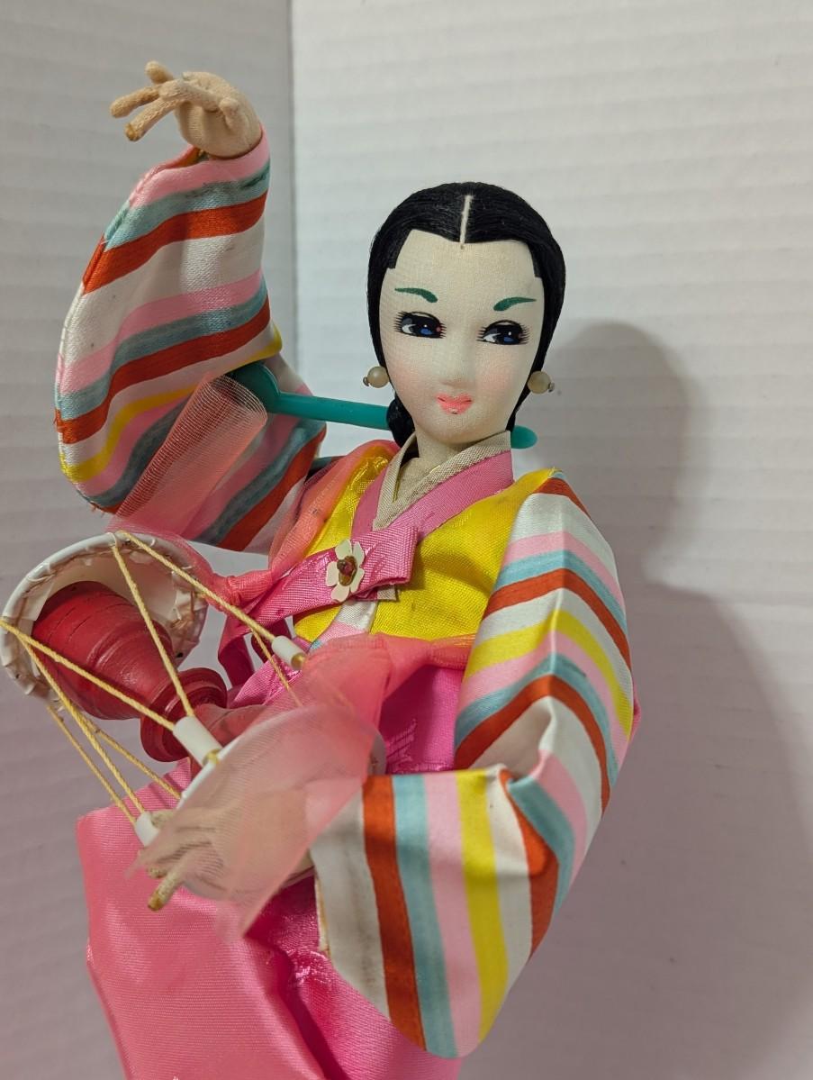 Korean doll, folk dancer figure, hanbok doll, Korean traditional costume, cultural decor, Asian decor, dancer figurine, fabric doll, drum dancer, collectible doll