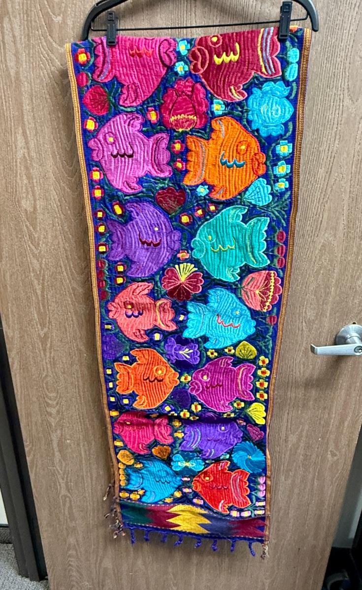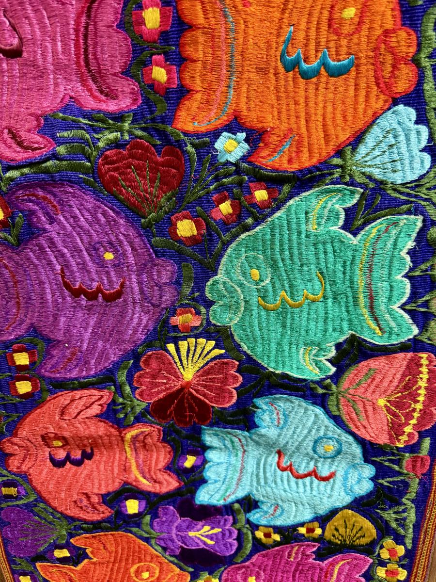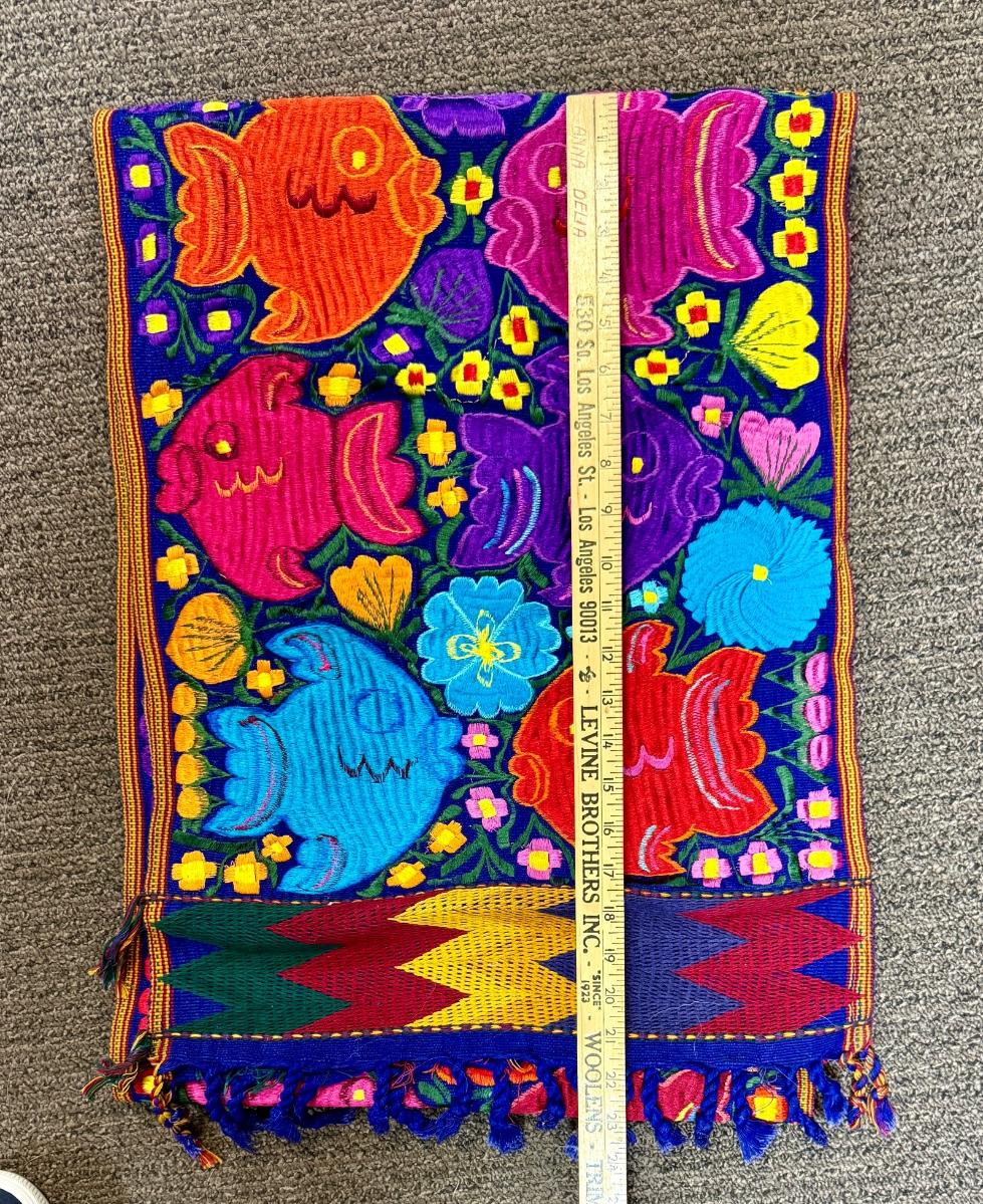 Traditional Mexican Handmade Embroidered Table Runner Tropical Fish Design