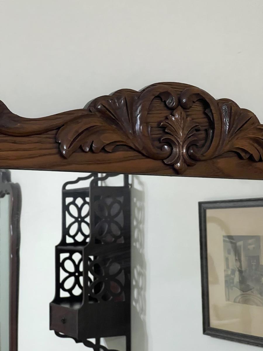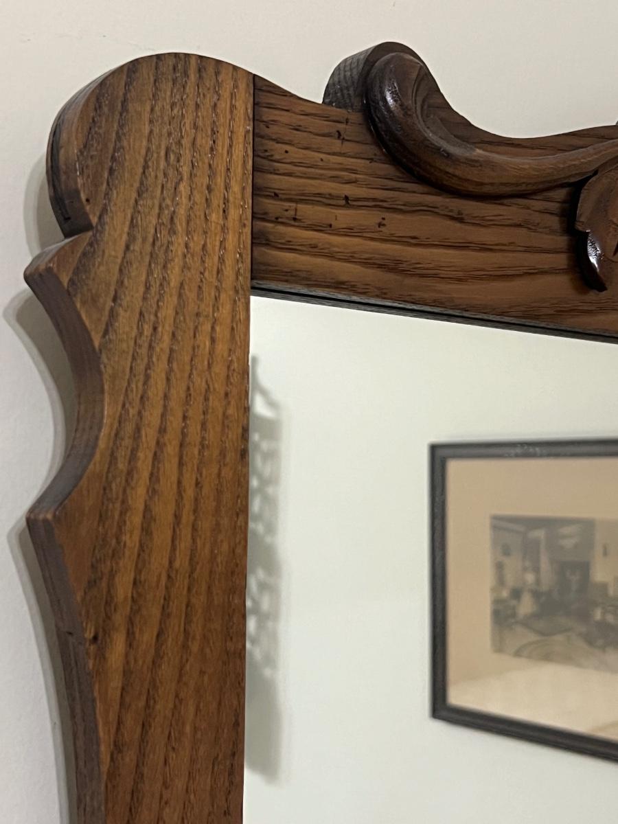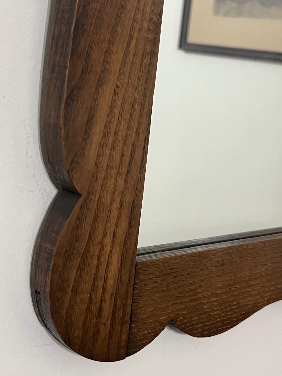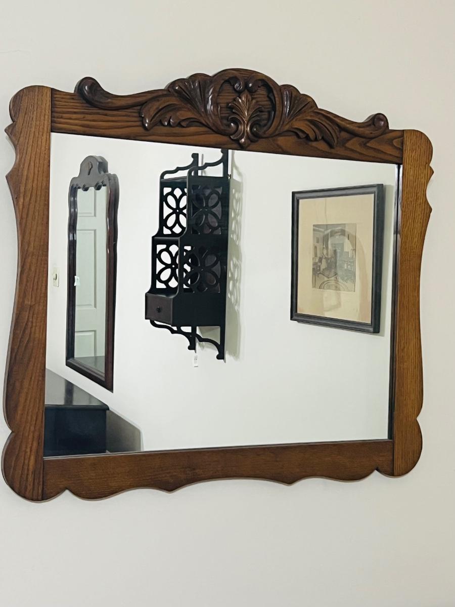 Traditional Wood Wall Mirror Measures 28 inches tall, 32 inches wide and 1 inch deep.