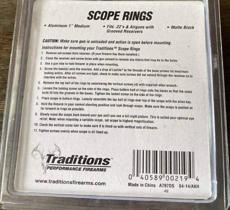 Perfomance firearms scope rings 1" Med Ring fits .22's & Air guns black grooved receivers (EB8)
