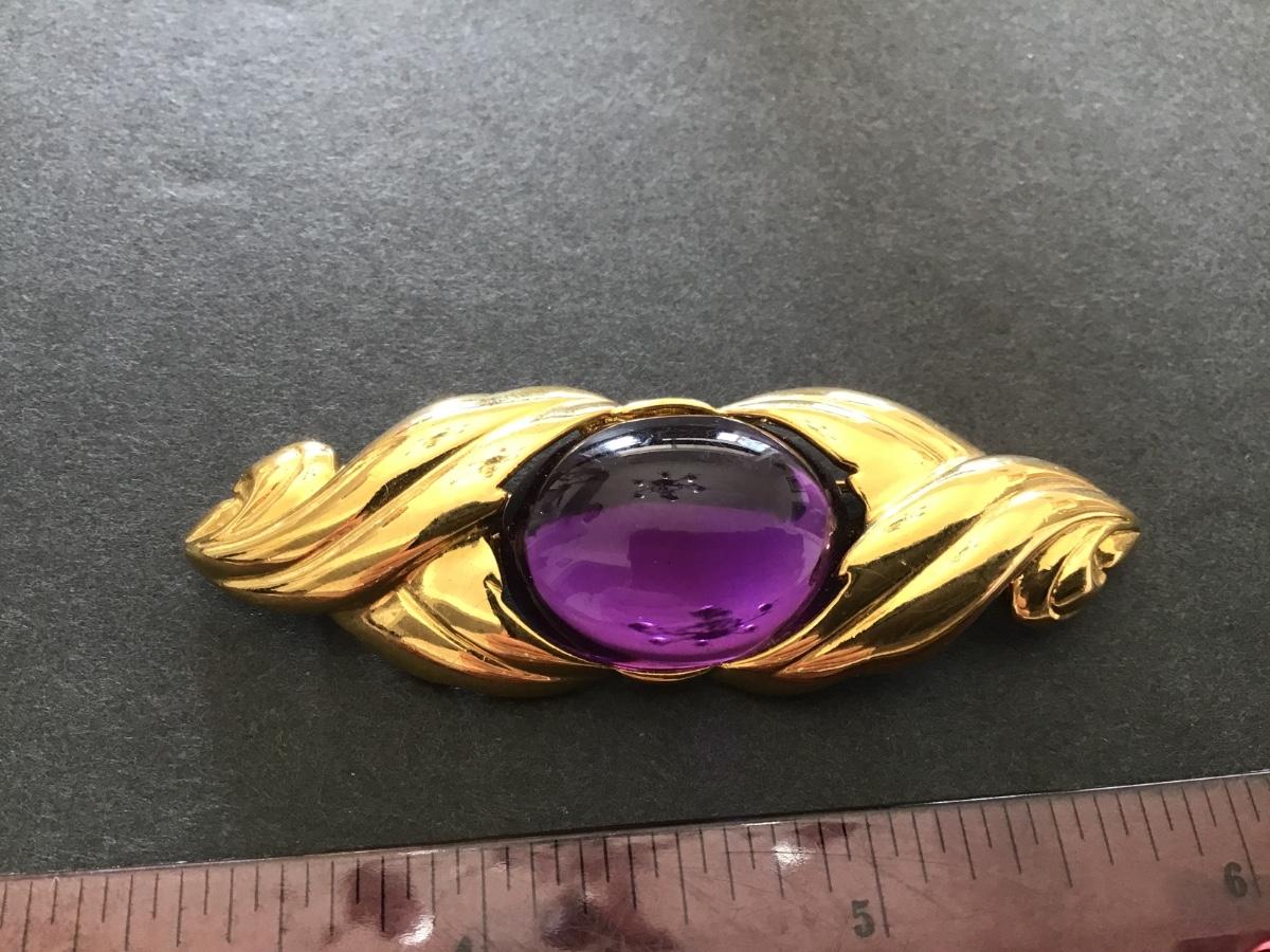 Trafari Vintage Gold Tone Purple Cabochon Signed