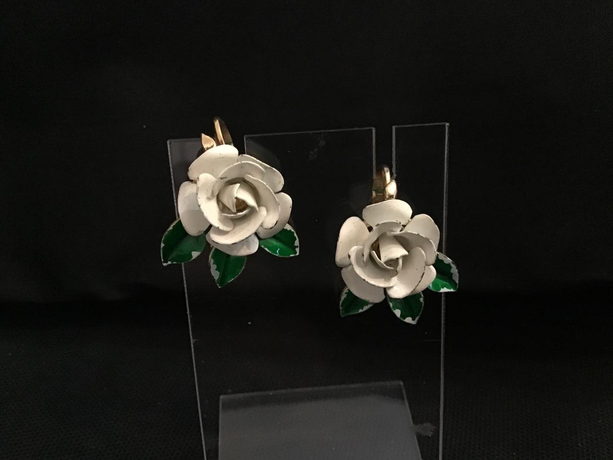 Trafari Vintage Rose Metal Clip on Earrings