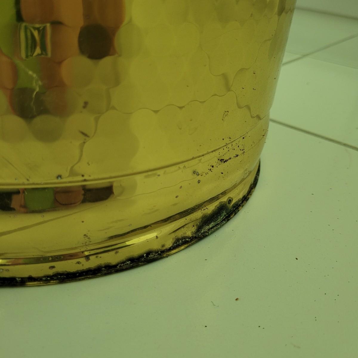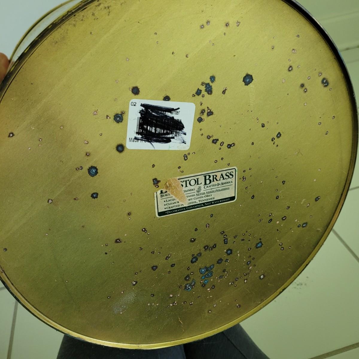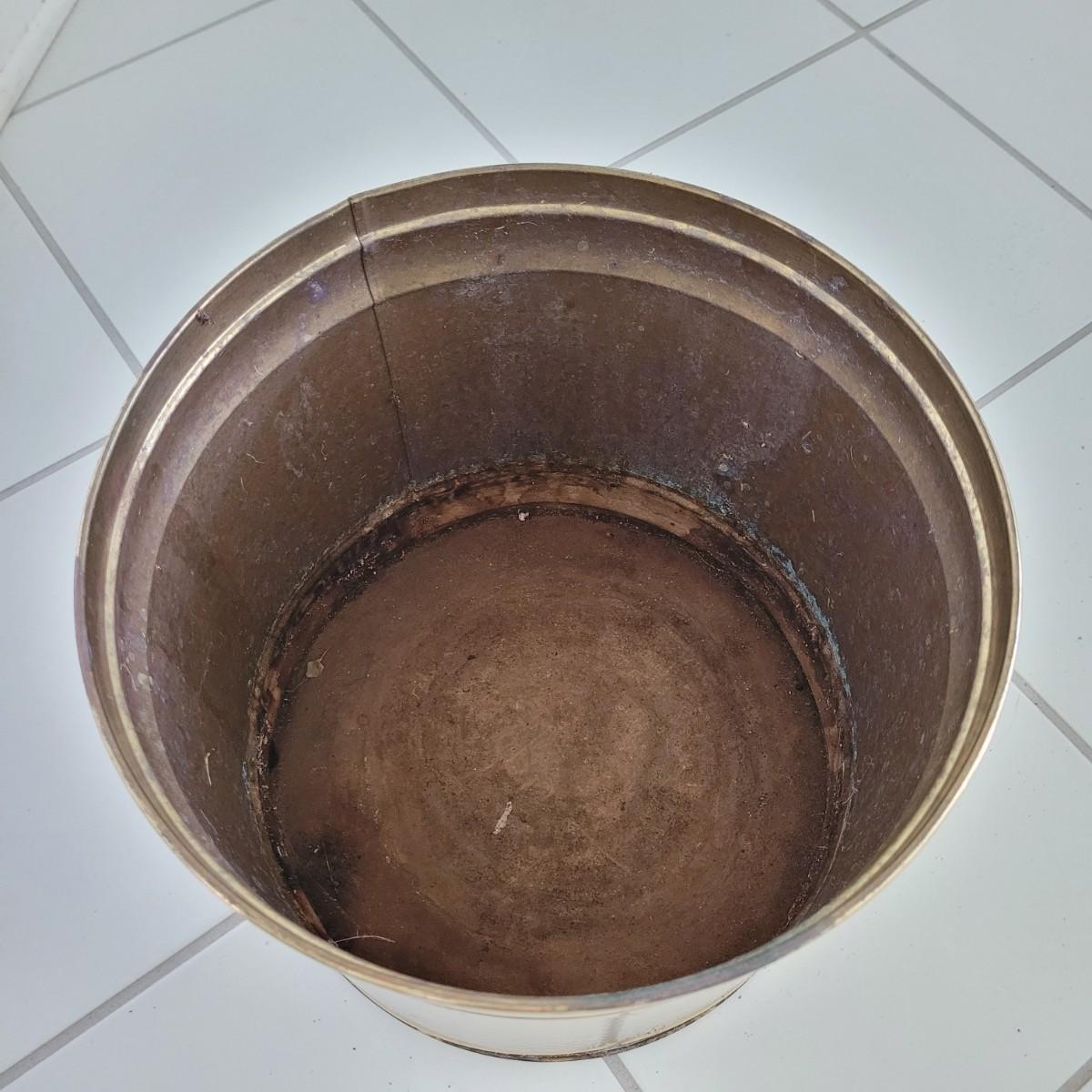 This collection of brass and copper planters includes a well established trailing jade plant. Largest brass planter measures approximately 12”DIA x 11”H. Local pick up only.