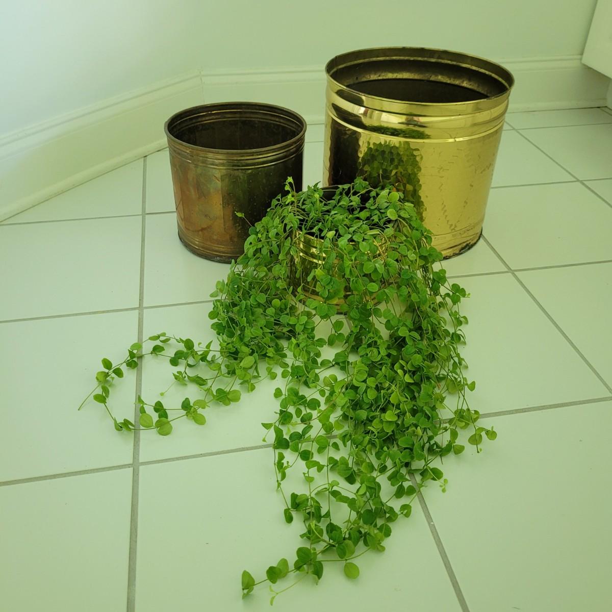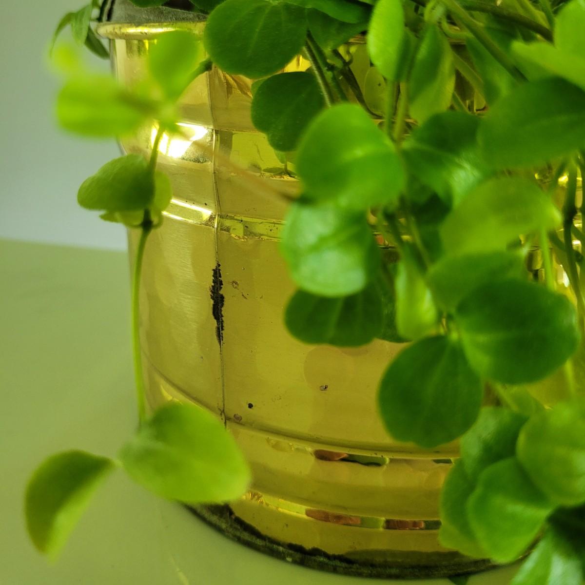 Trailing Jade Plant and Brass and Copper Planters (P-CE)
