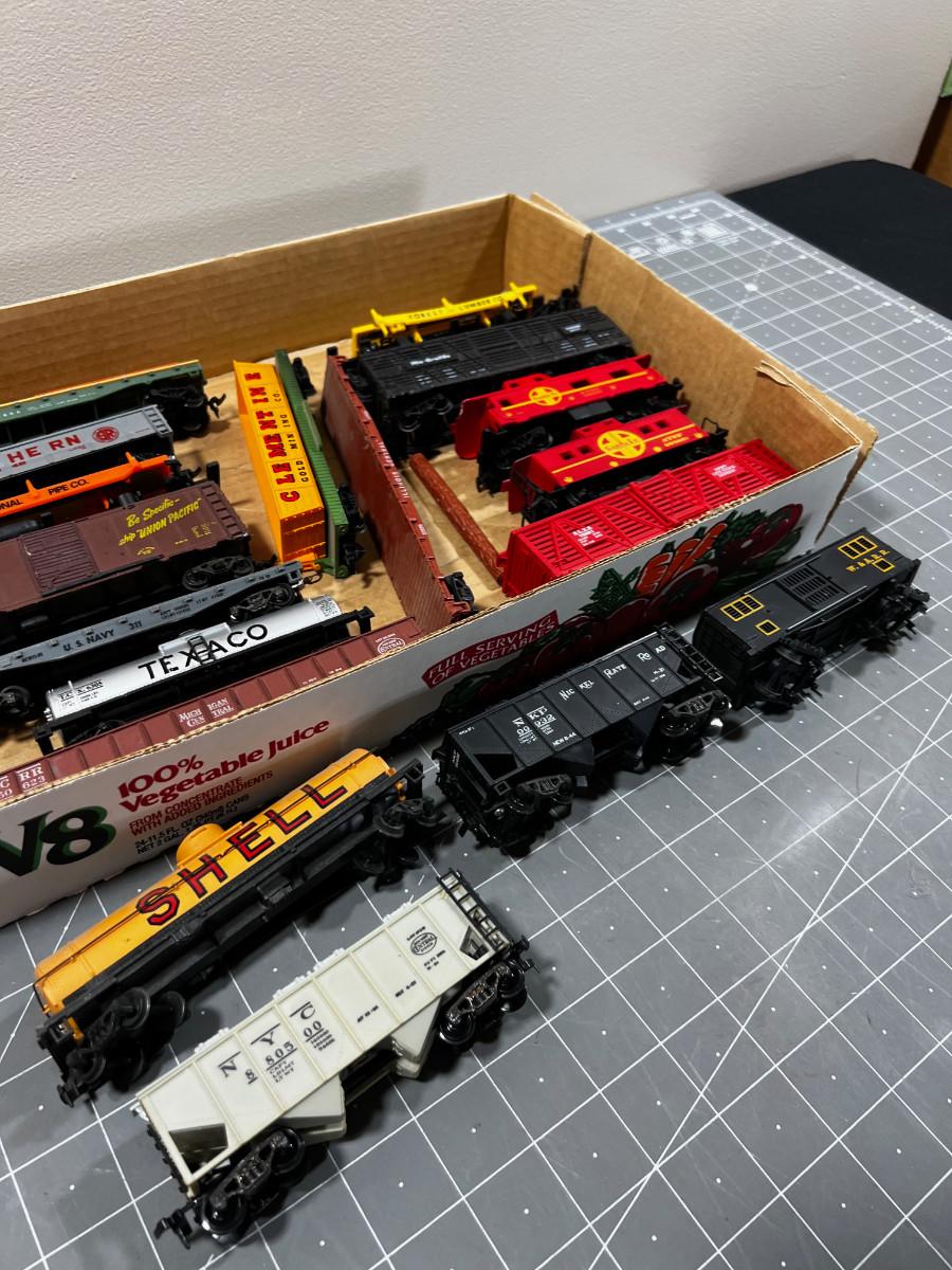 Train Car Caboose Cattle Car and Box Car HO Scale