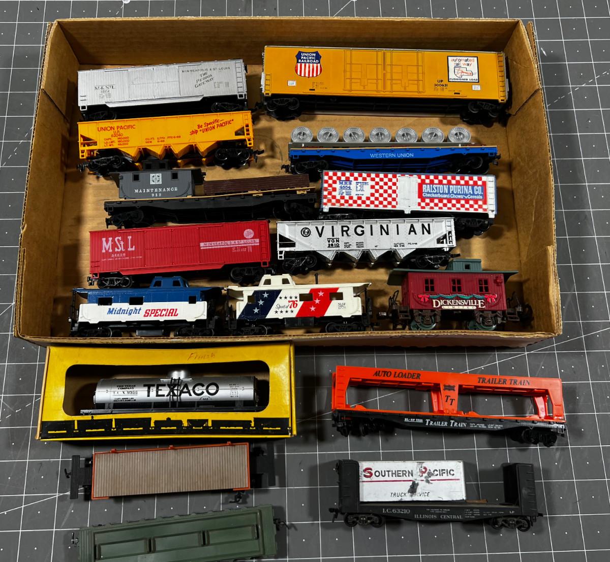 Train Cars HO Scale, Flat Cars, Box Cars
