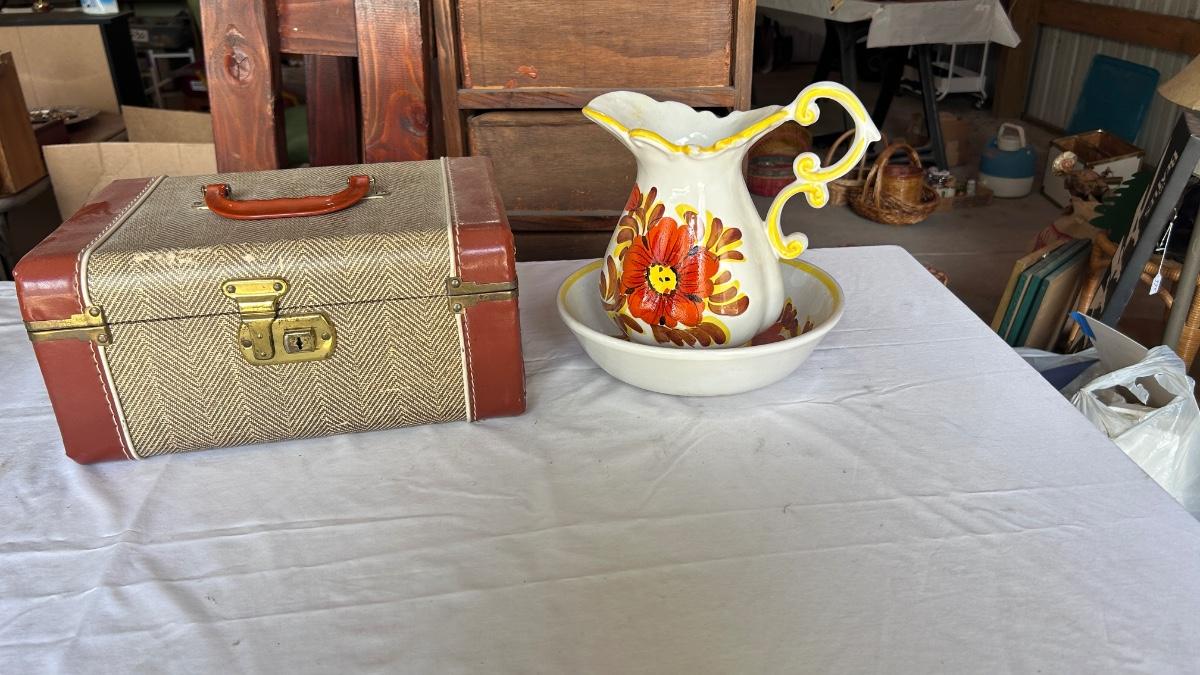 TRAVEL TRAIN CASE PLUS PITCHER AND WASH BOWL