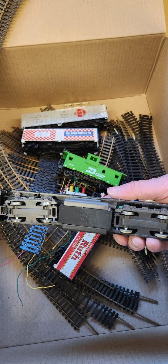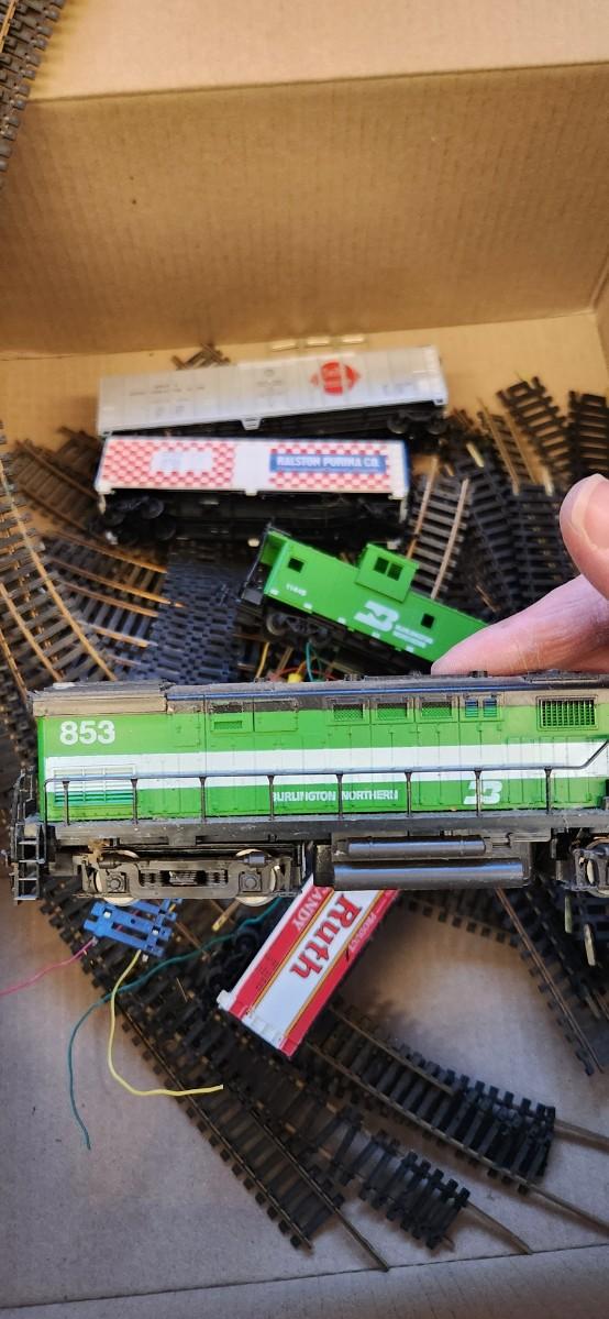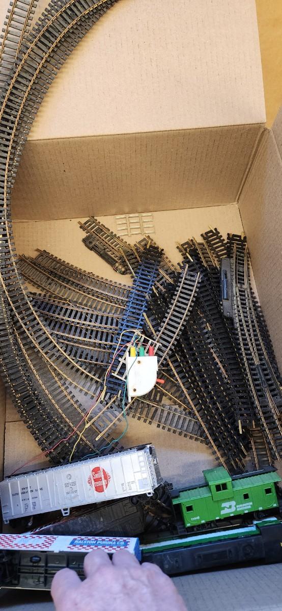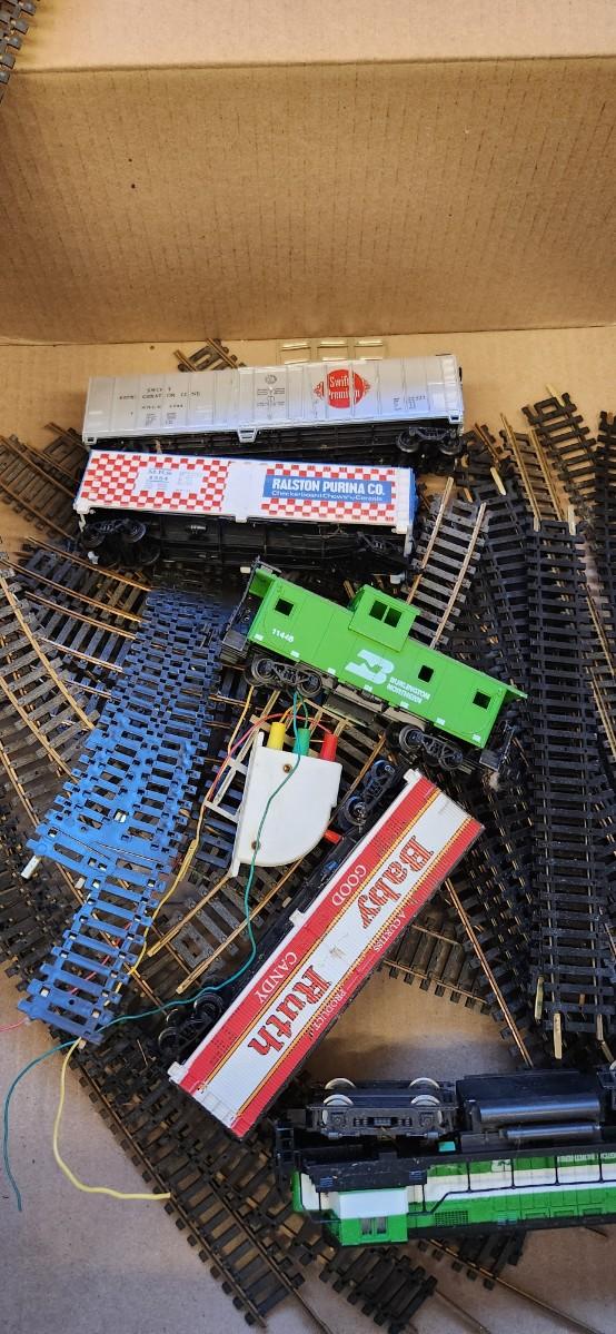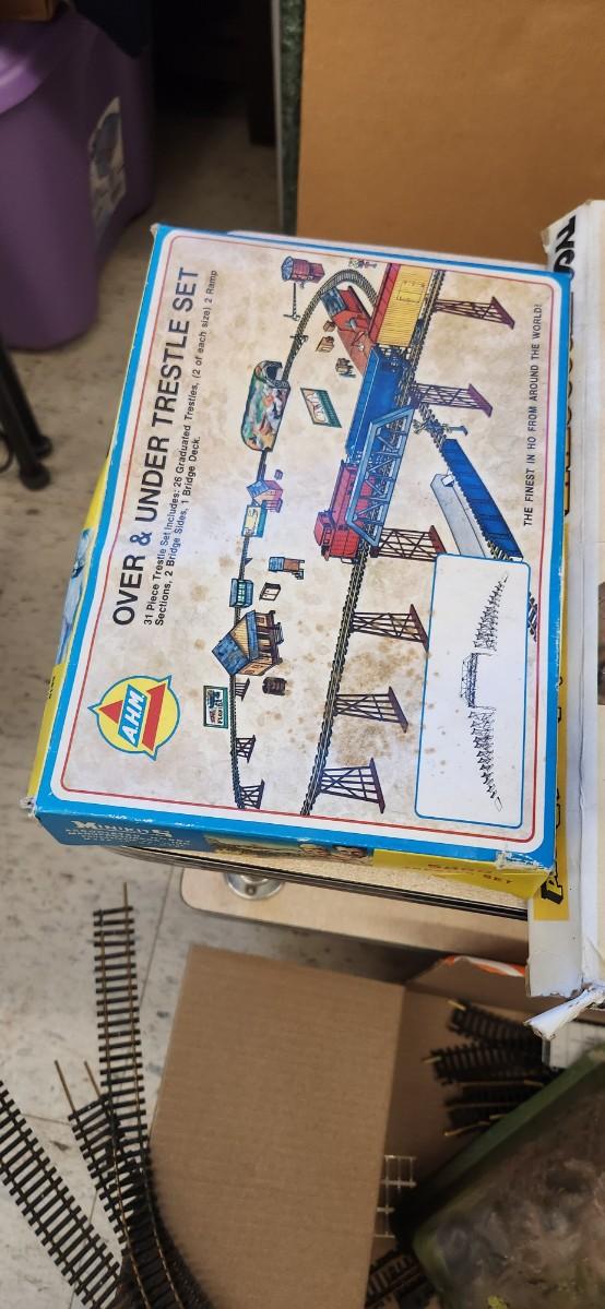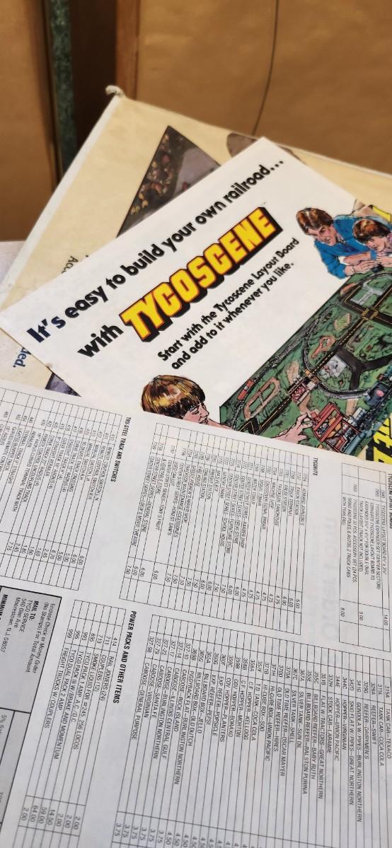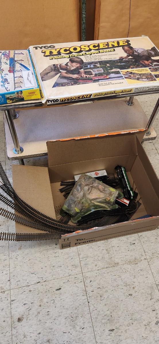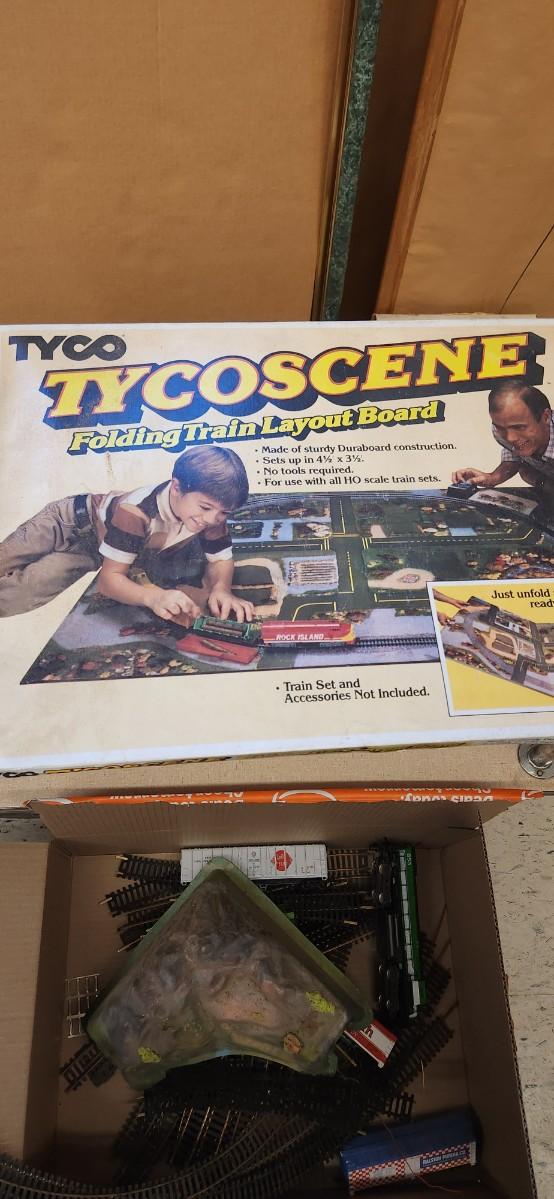 I know very little about trains but this has a Tycoscene in box an over and under set, 4 cars, one engine and a bunch of tracks.