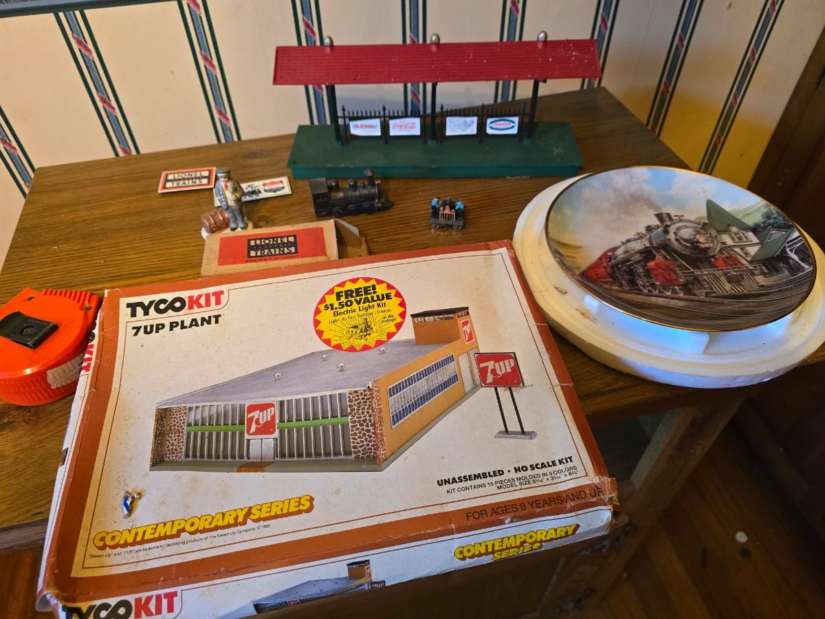 9 peices. Lionel box is empty but tyco kit appears intact.