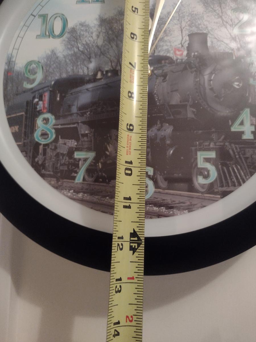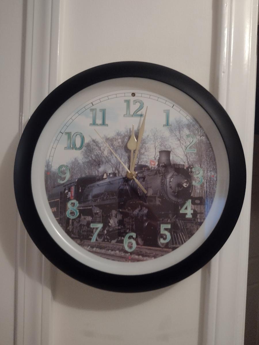 Train Theme Wall Clock with Sound- Battery Operated- In Working Condition. Item measures approx 13" in diameter.