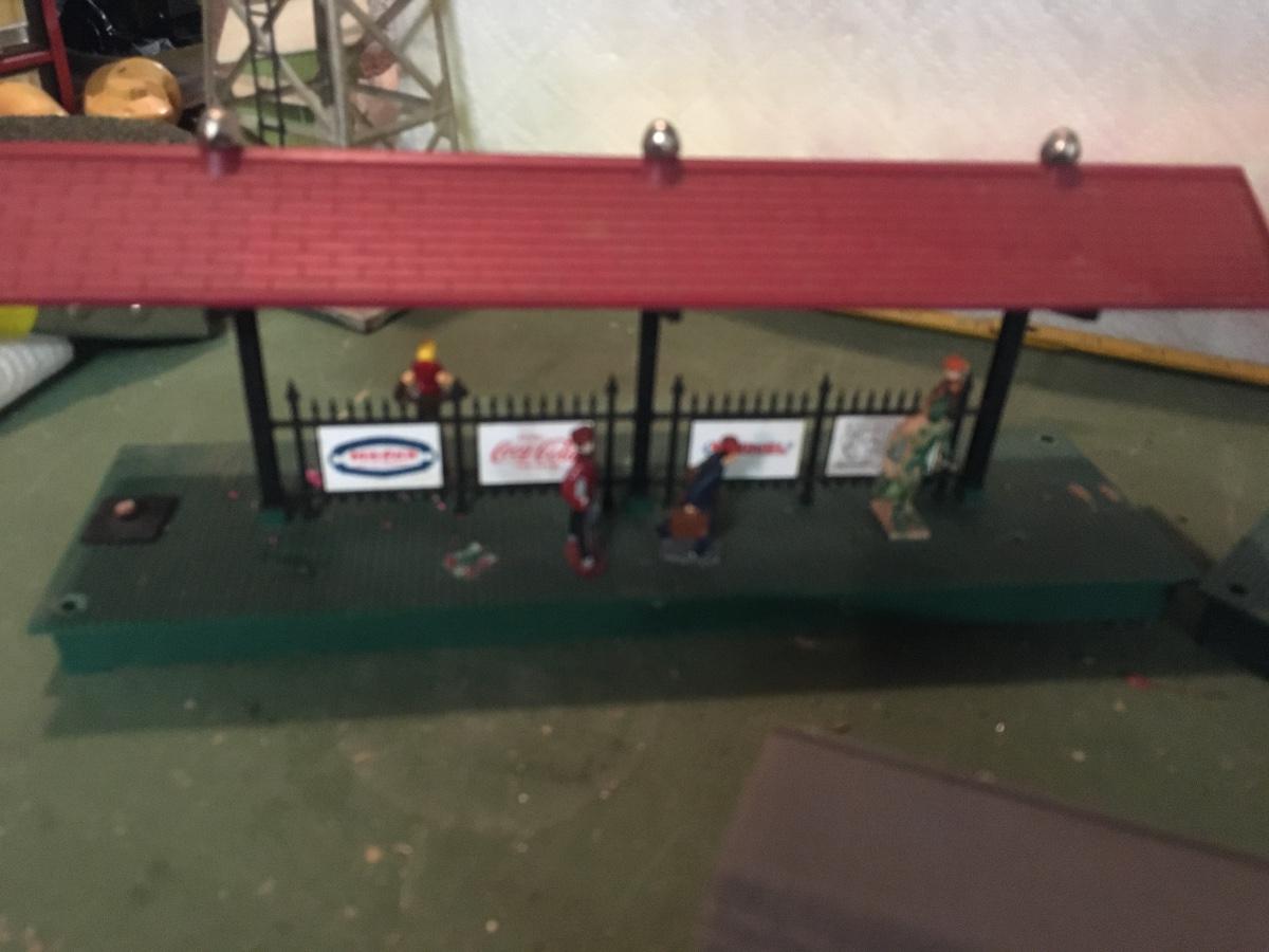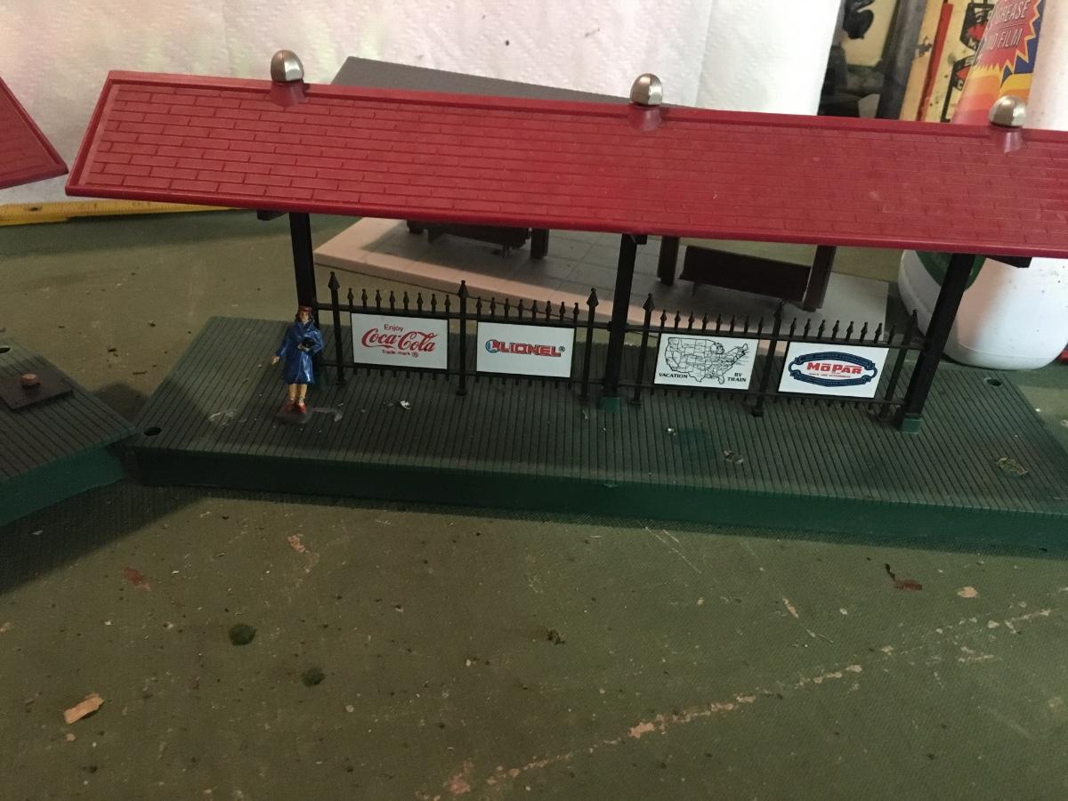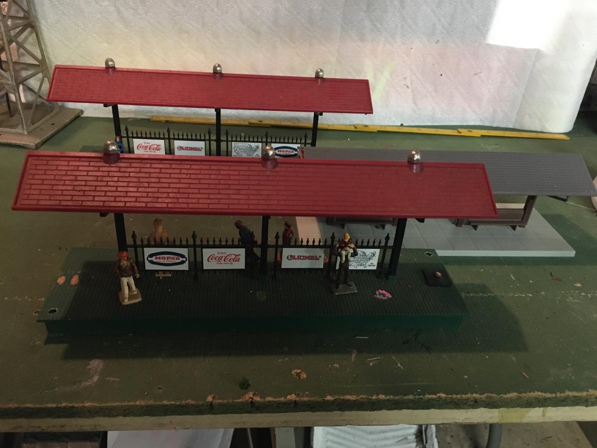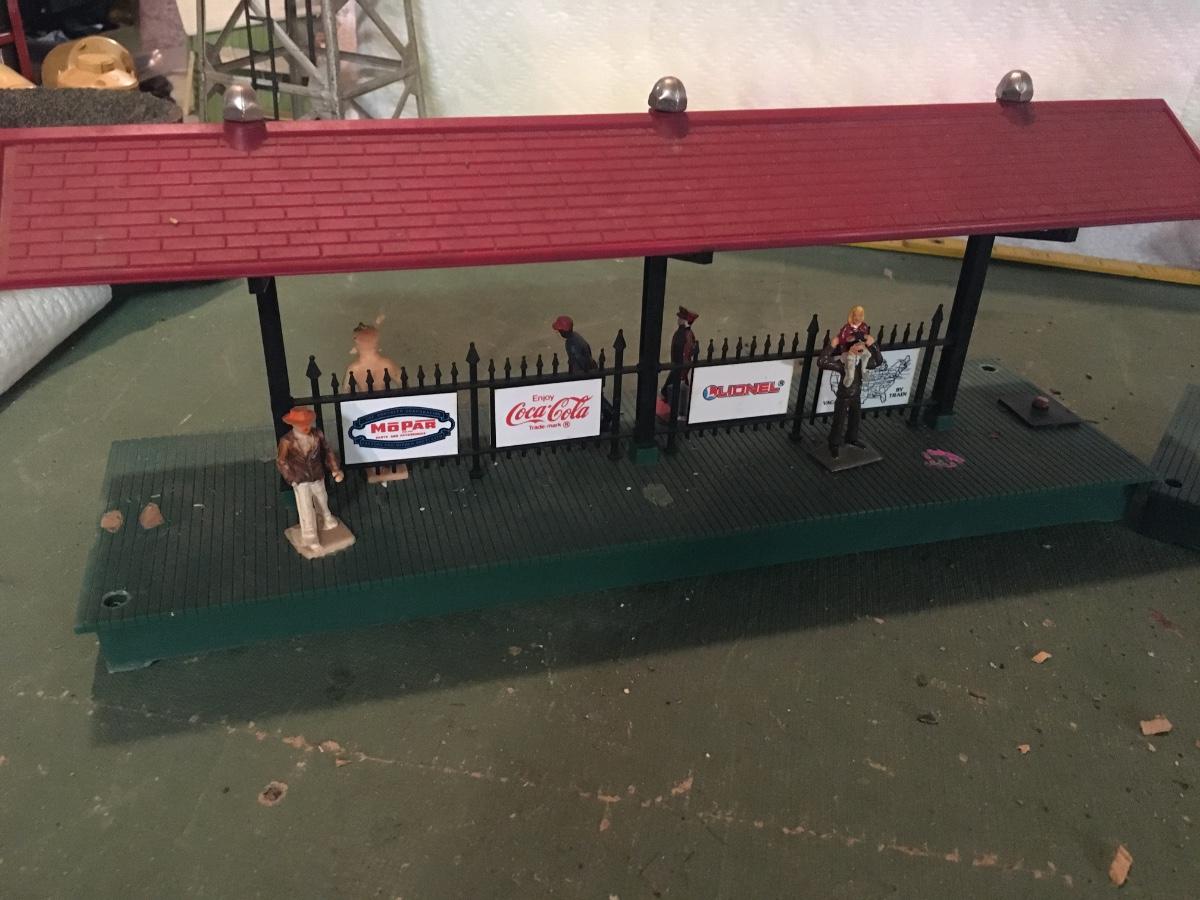 3 plastic platforms, 2 with advertising.