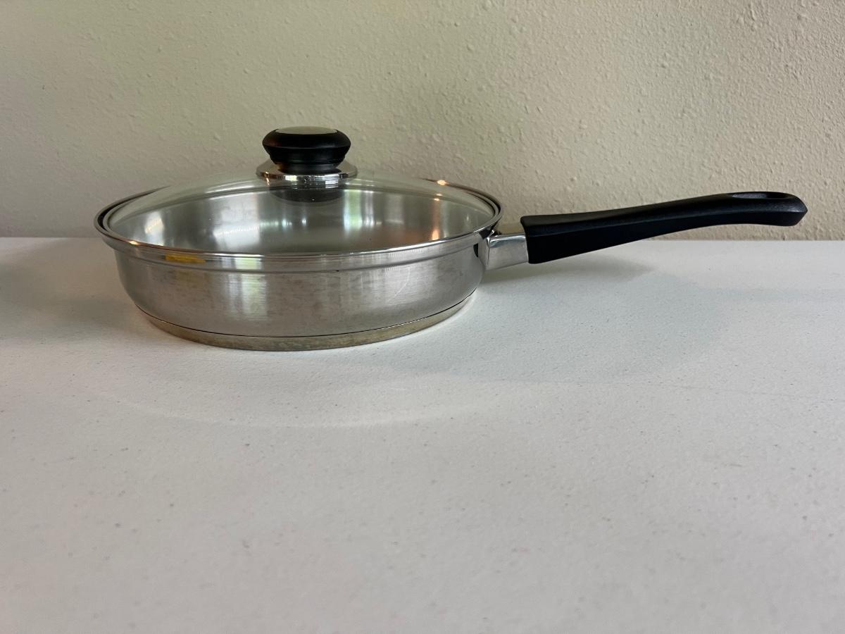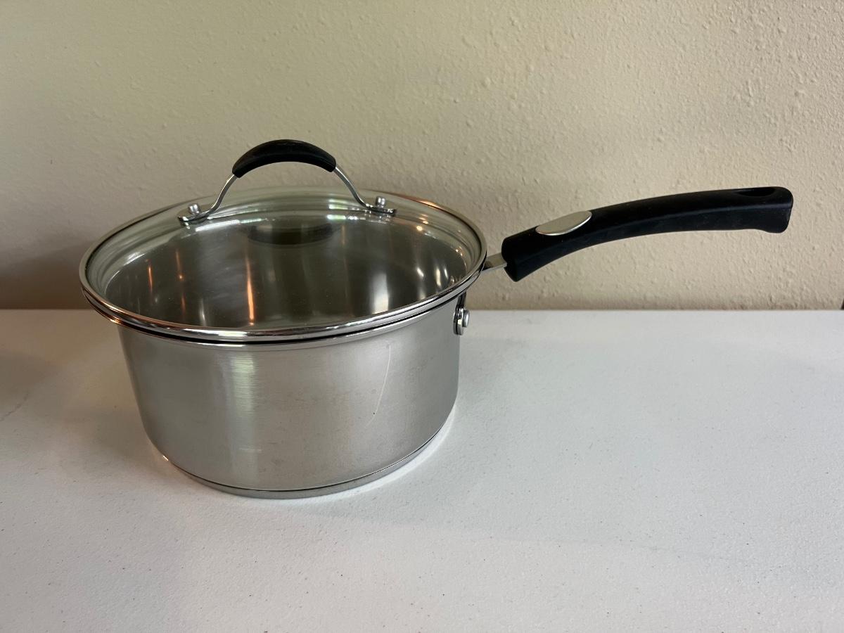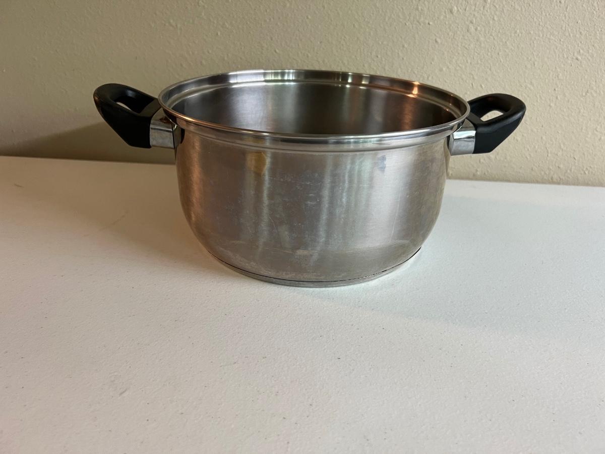 STAINLESS STEEL SET INCLUDES 3 Quart, 2 Quart, 1 Quart, 8 1/2 inch and a boiling pot 4 Quart. All have lids except the boiling pot.