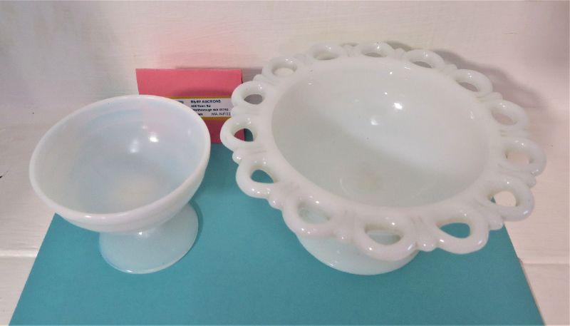 Translucent Milk Glass Ice Cream Dish & Party Dish VINTAGE LOT