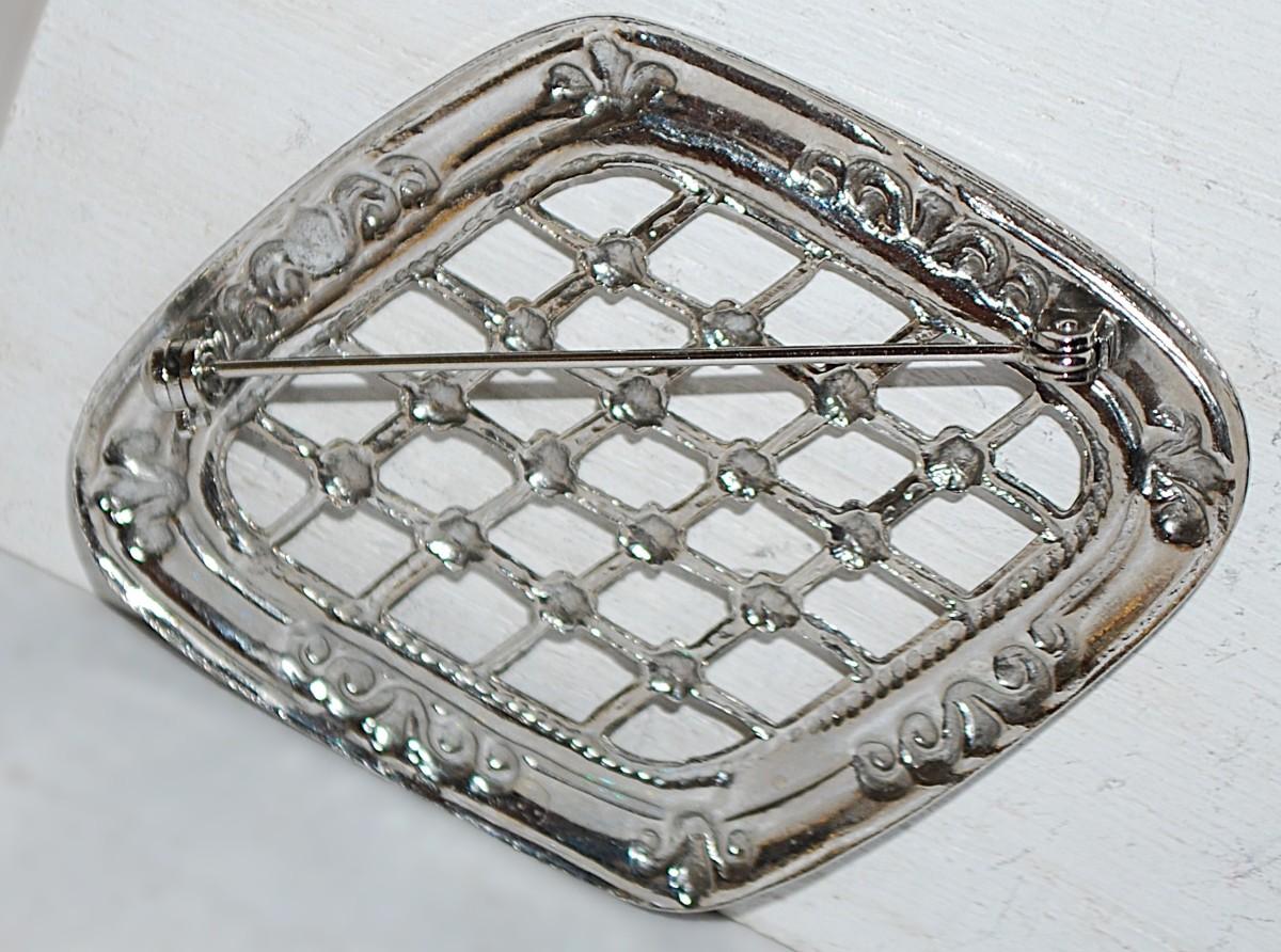 Trapezoid Shaped Silver Colored GRILL BROOCH (2¼" x 1¾") on a Silver Tone Setting