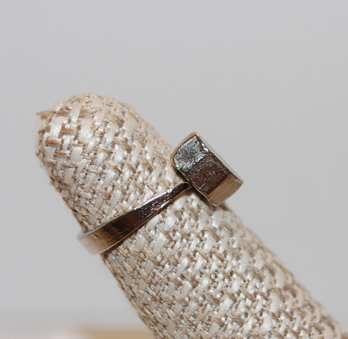 Size 4 ¼ Trapezoid Top Silver-Tone Ring with Geometric Design (3.2g)