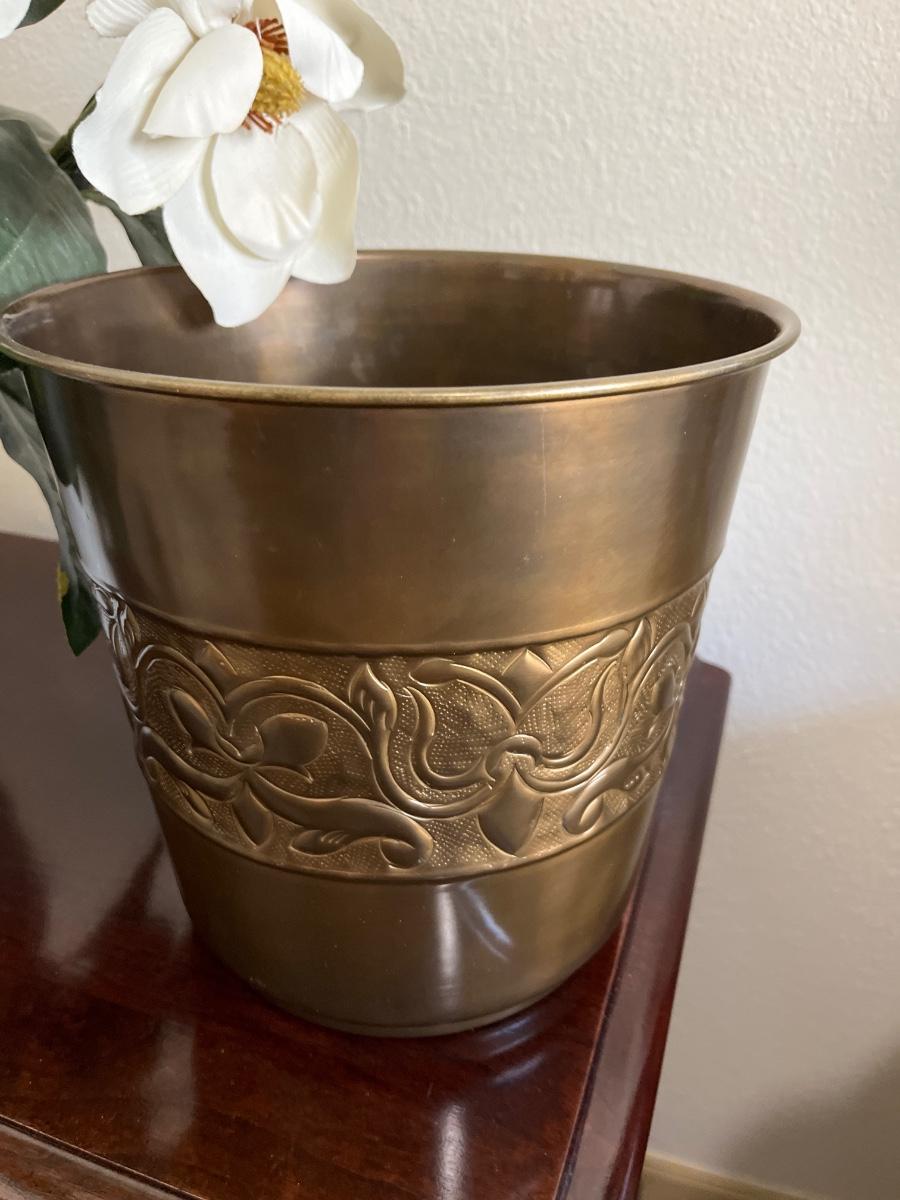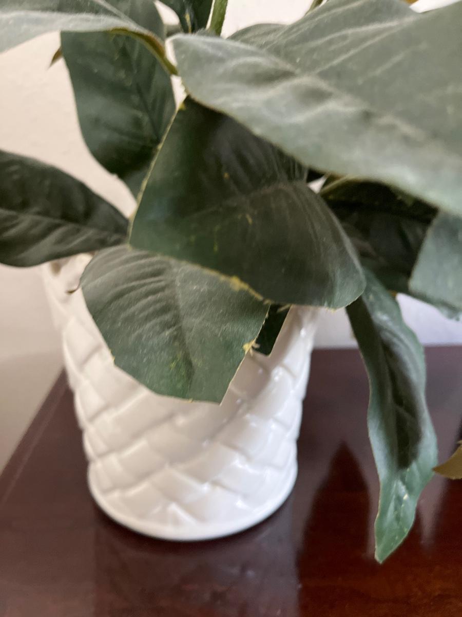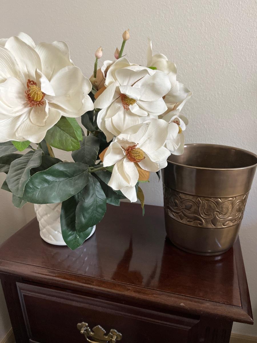 Trash can & magnolia plant (faux)
