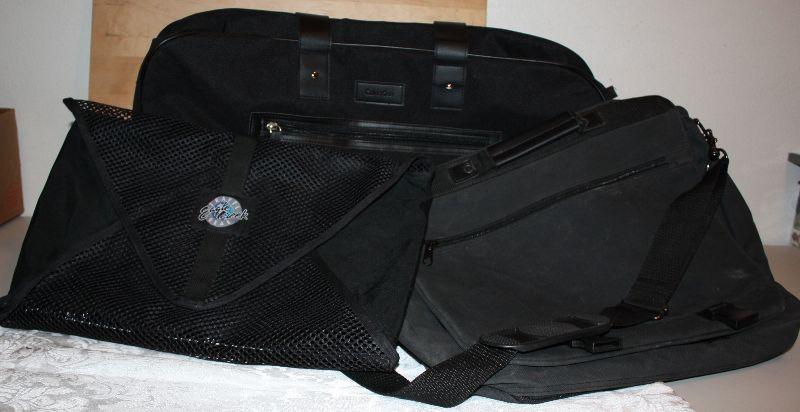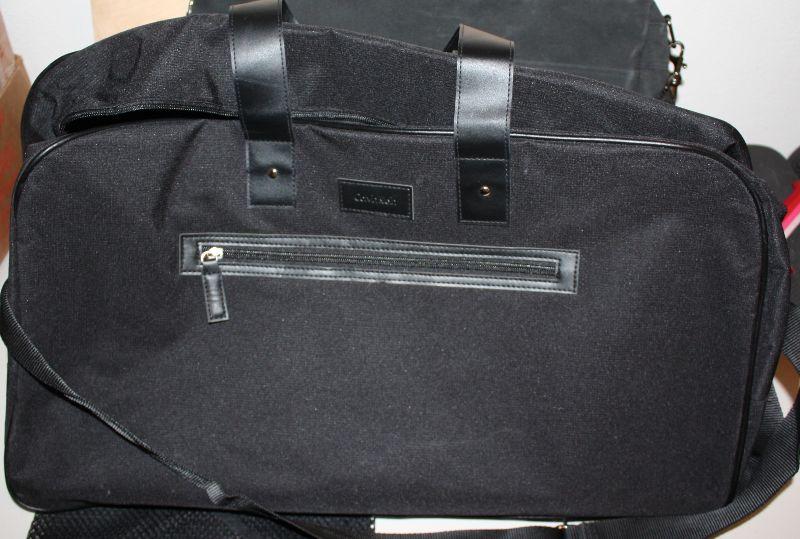 Calvin Klein overnight bag 22x12x9, messenger bag, and Eagle Creek shirt folder