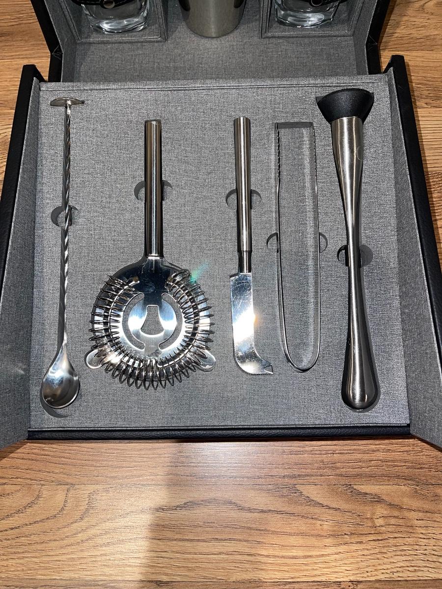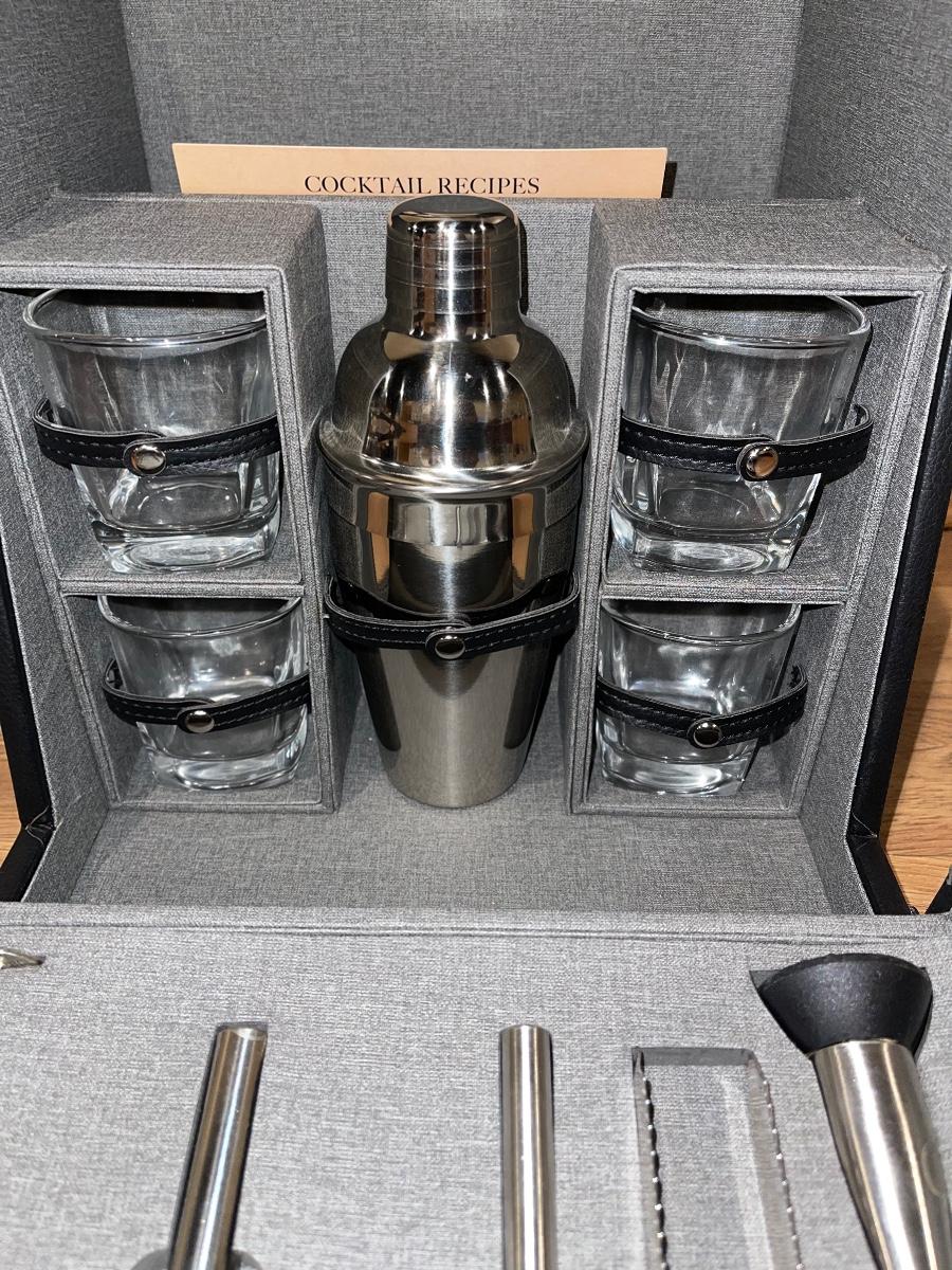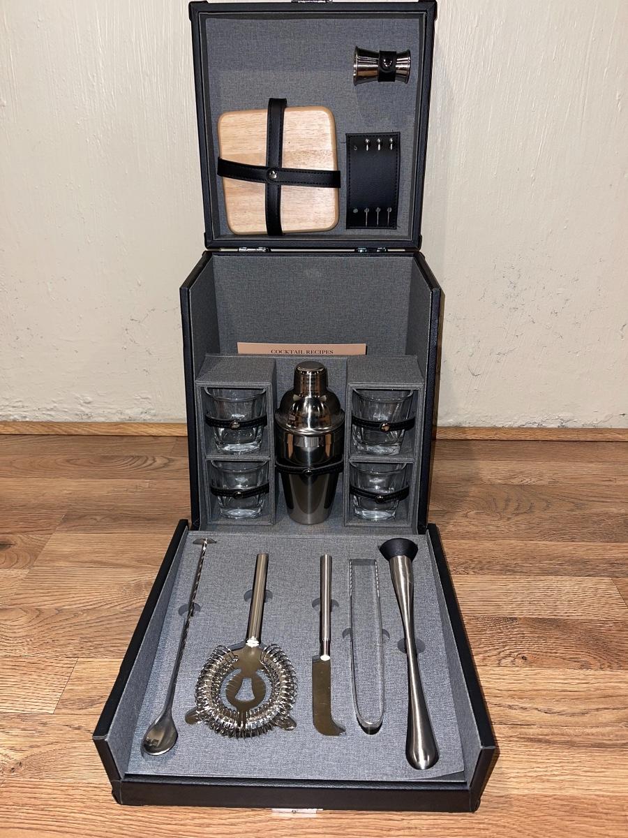 Leather Traveling Bartender Set, comes with all items included in box