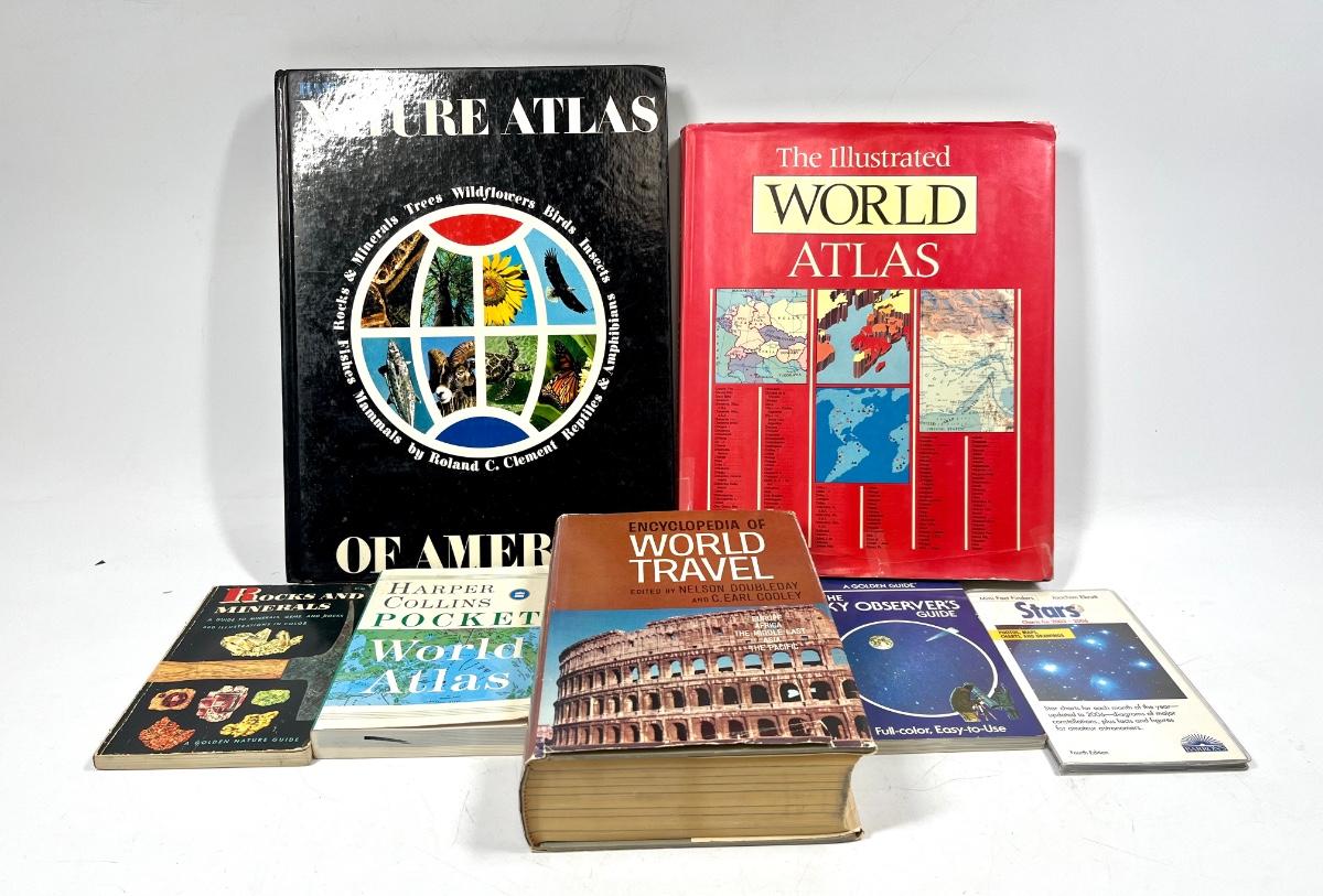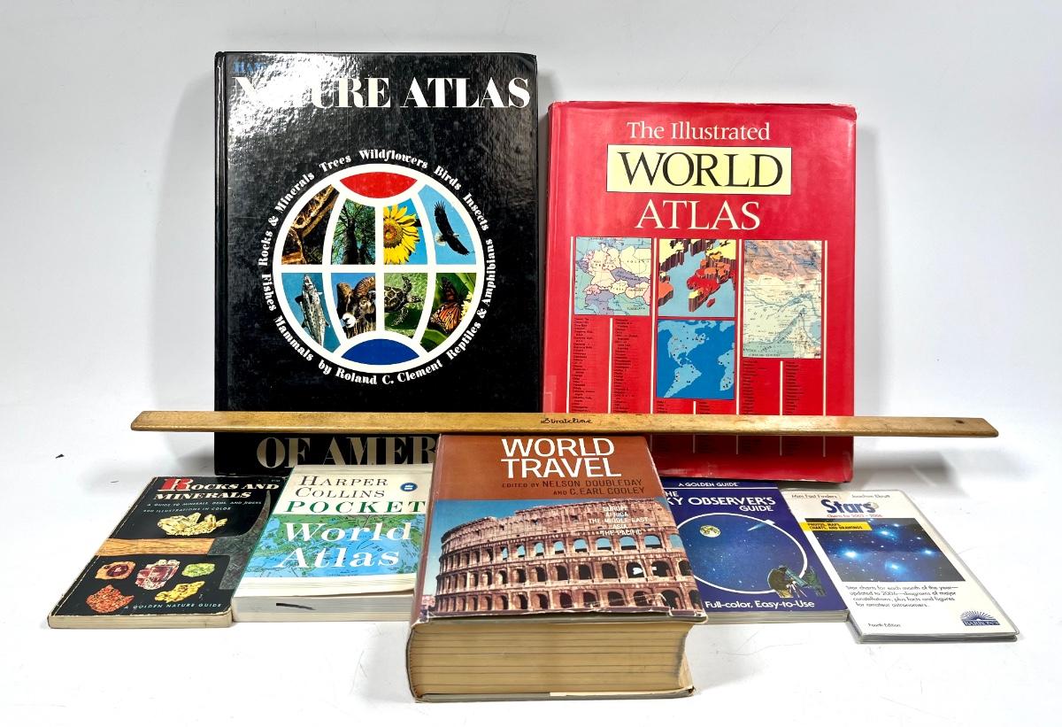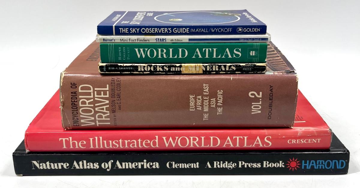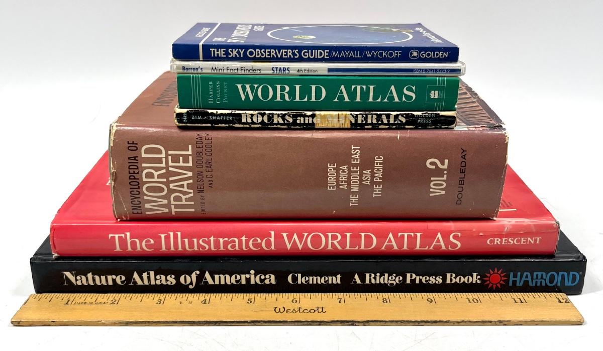 Travel Book lot vintage and modern - world atlas, sky observation, rocks and minerals guide and more