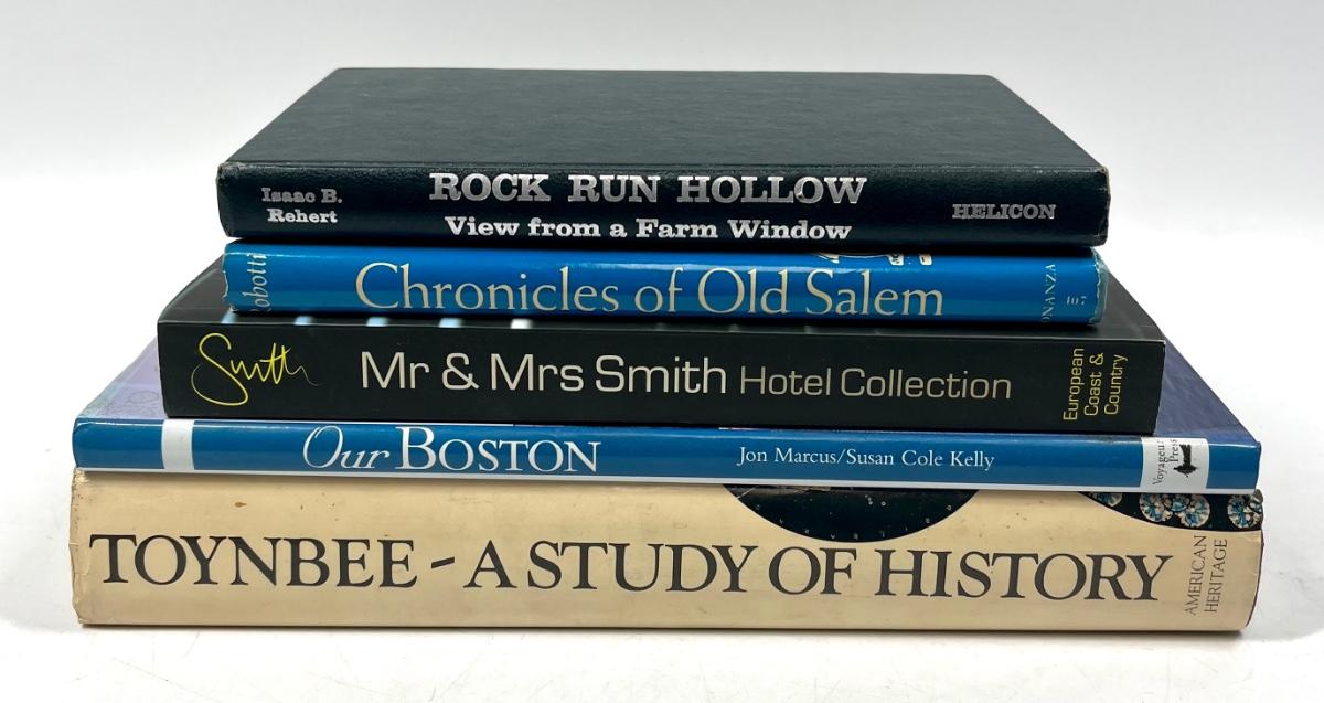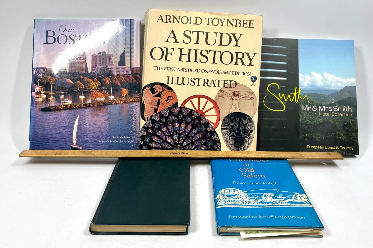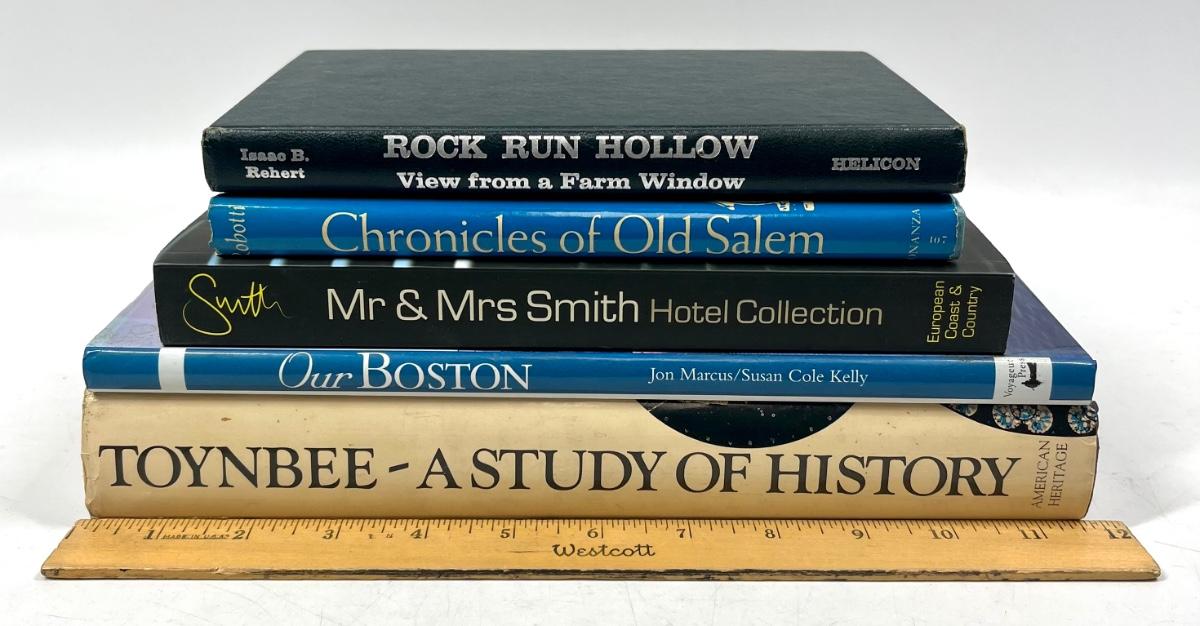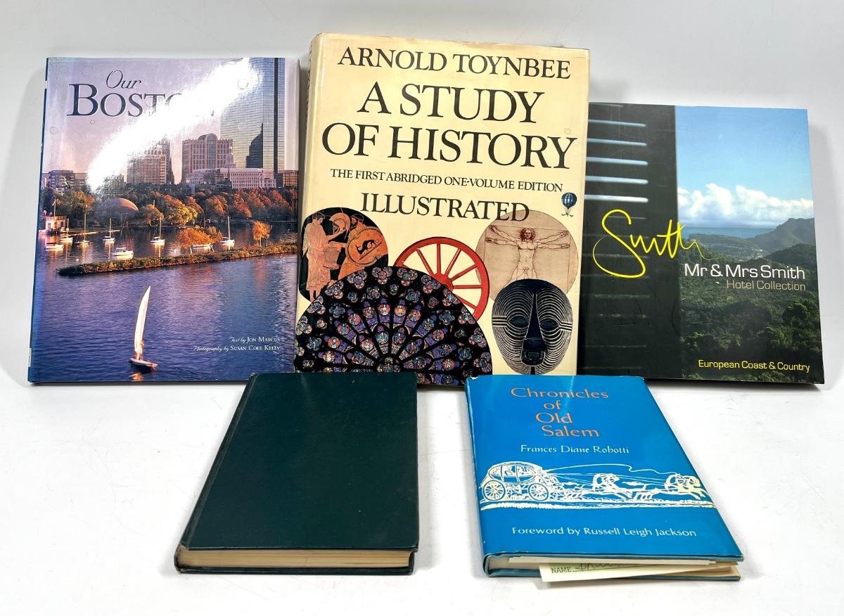 Travel, History, Memoir Book lot - mix of large coffee table size books, vintage hard cover and softcover hotels, Boston, Salem and more