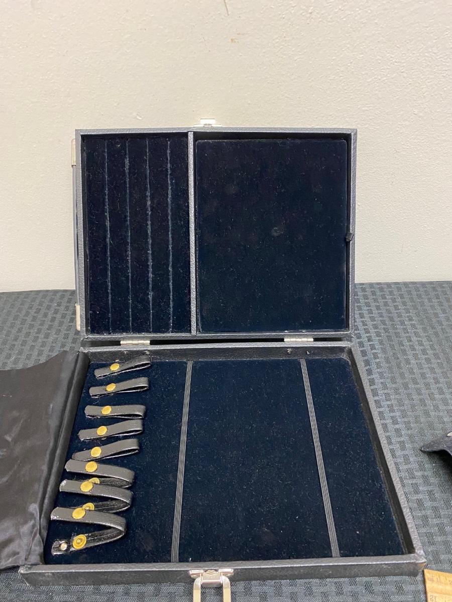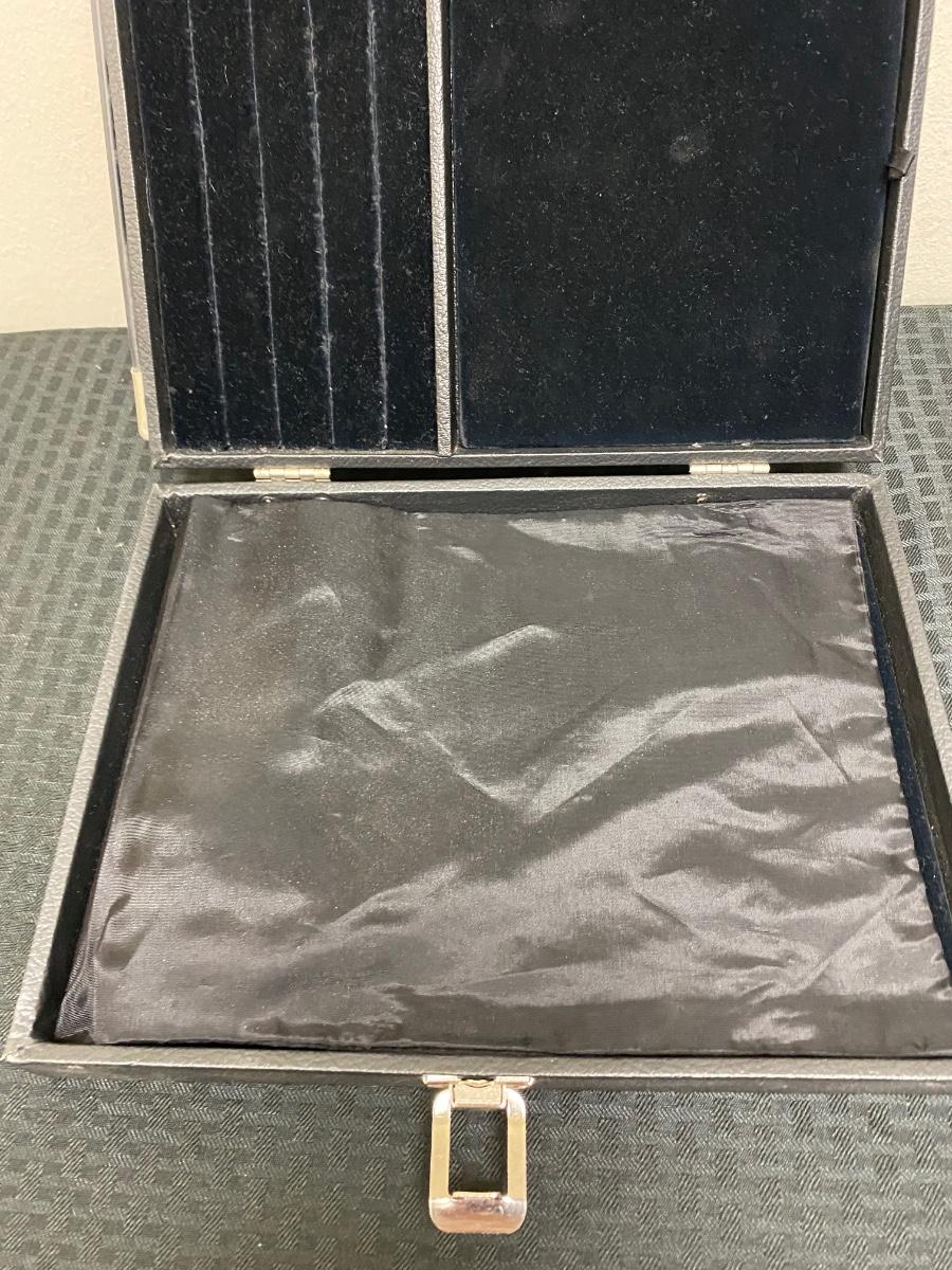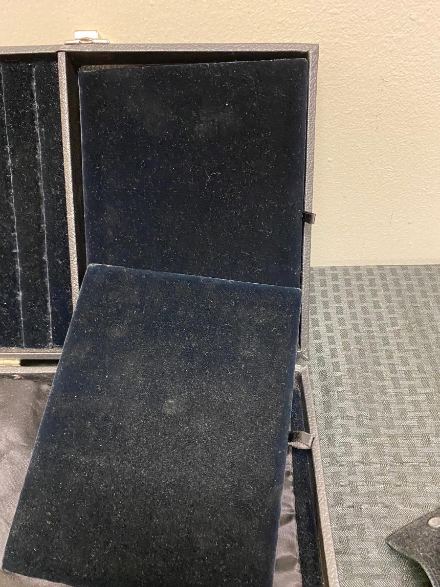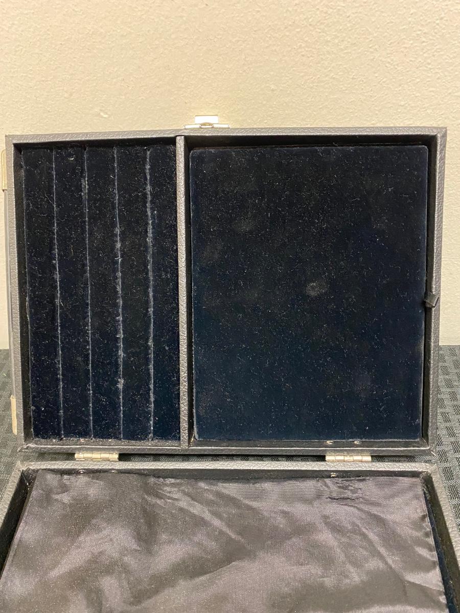 Jewelry storage case. Slight wear on the outside from use. Slim design, great for vacations or hiding under things.