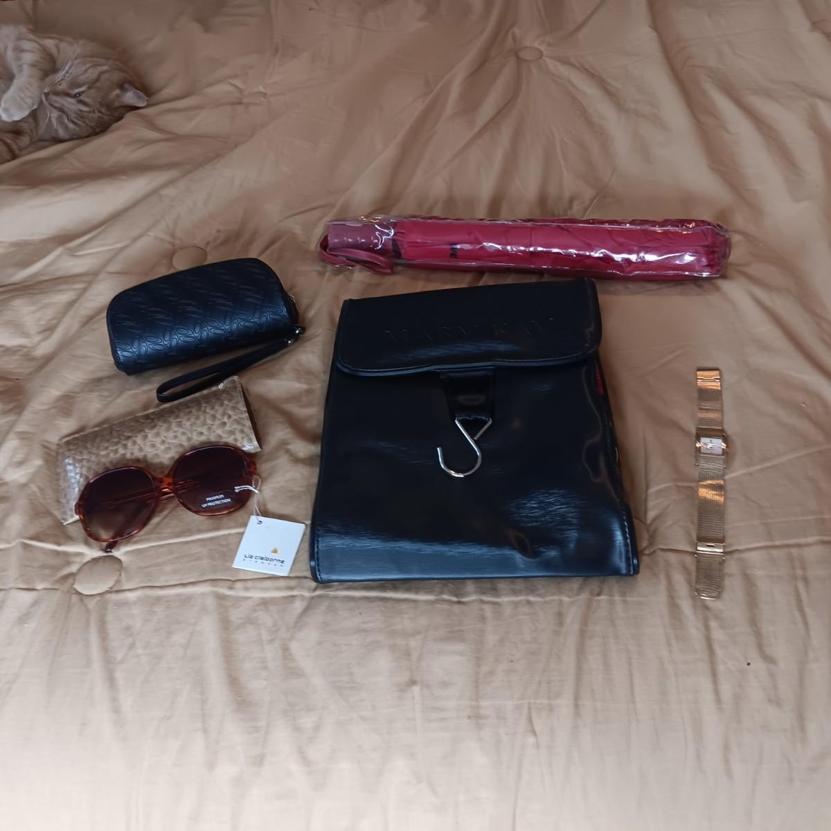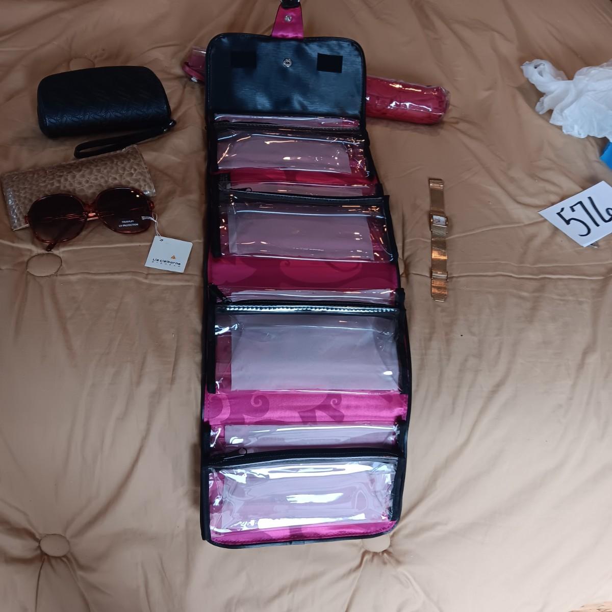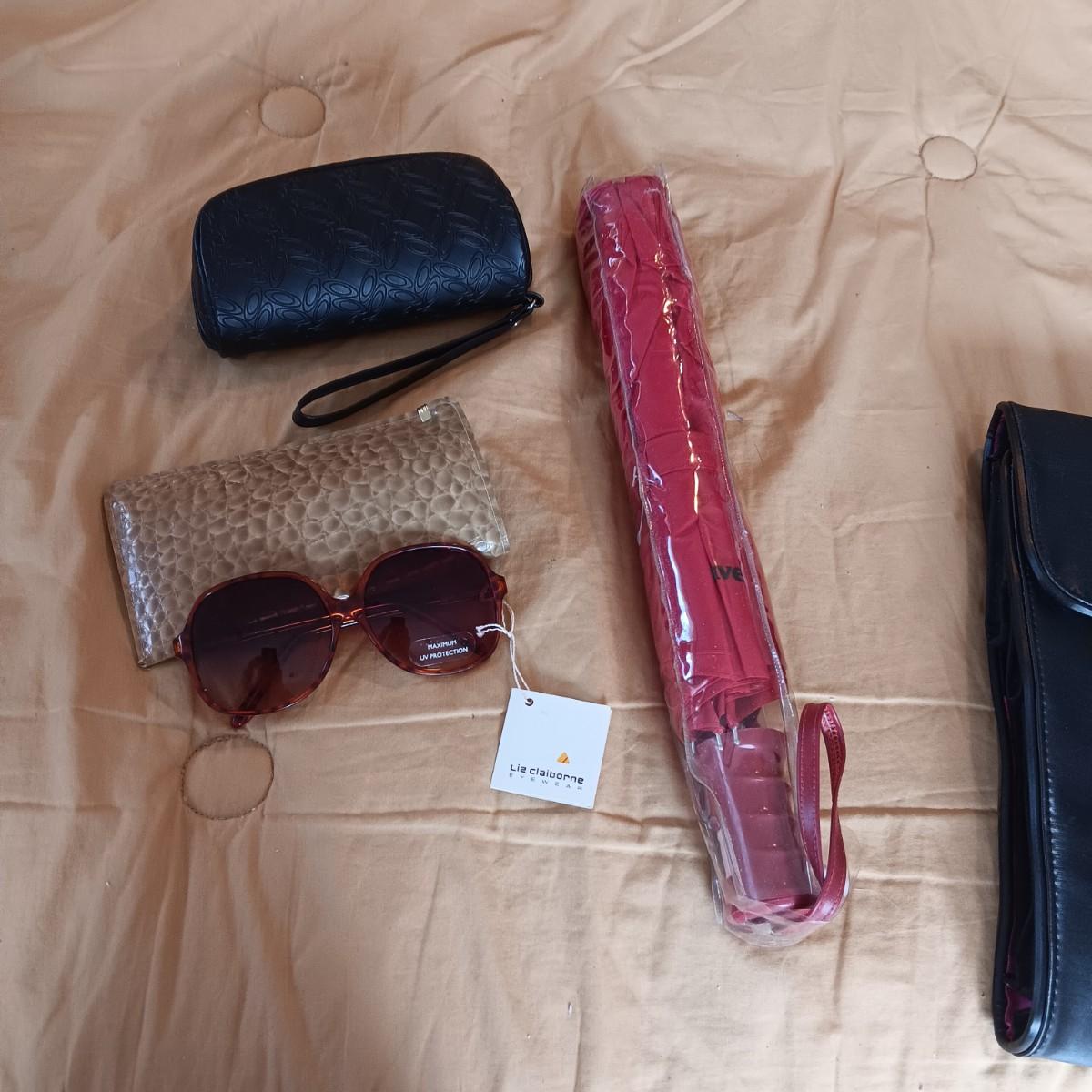 TRAVEL ORGANIZER, LIZ CLAIBORNE SUNGLASSES, TIMEX WATCH, UMBRELLA & OAKLEY CASE