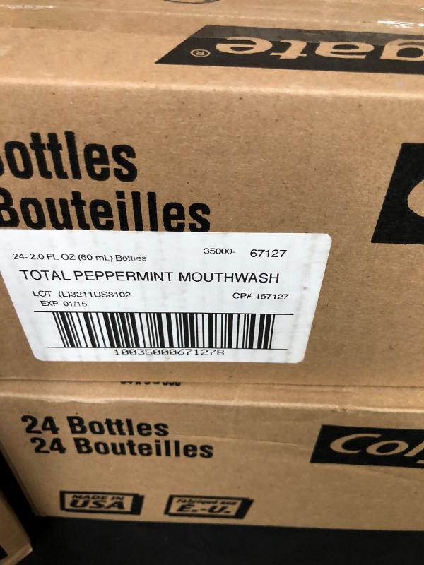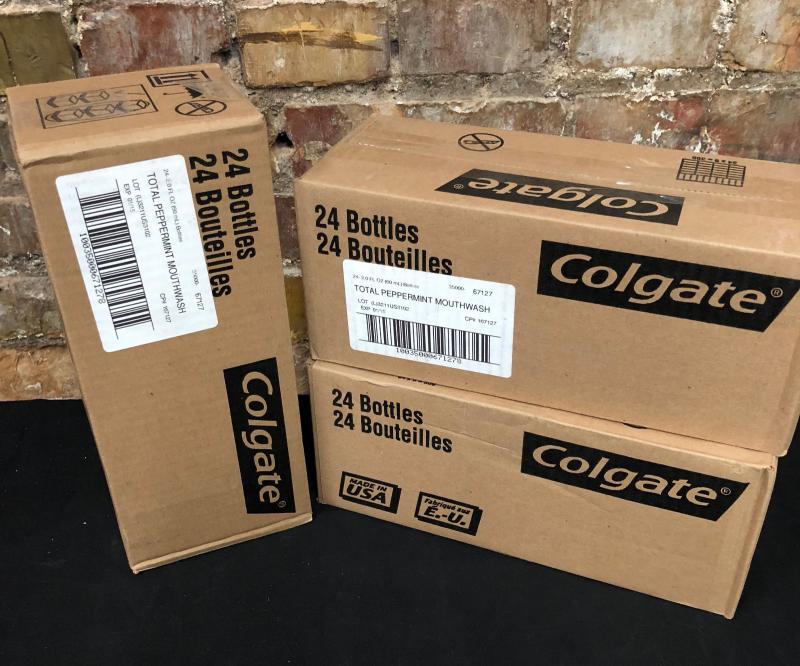 Three cases of travel-size peppermint mouthwash from Colgate...24 bottles per..New