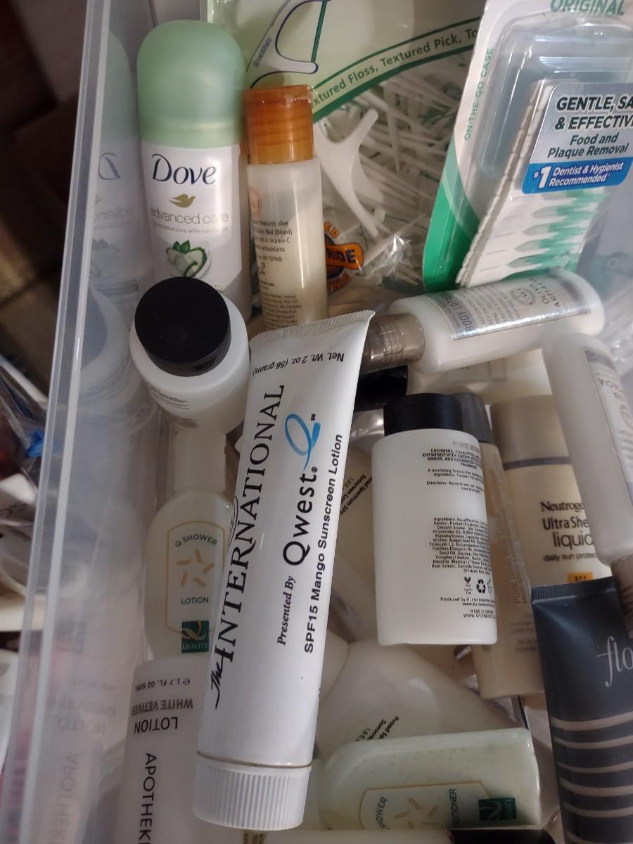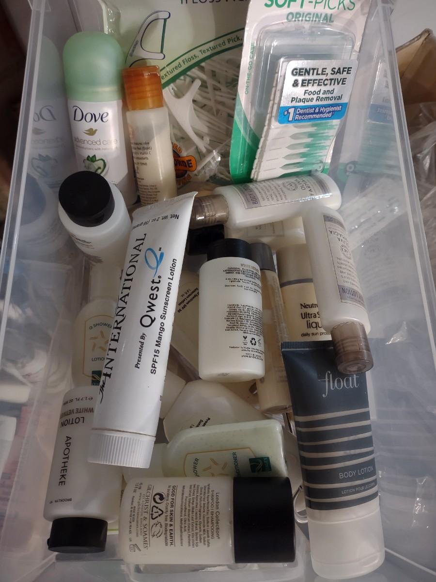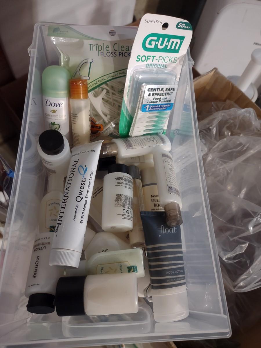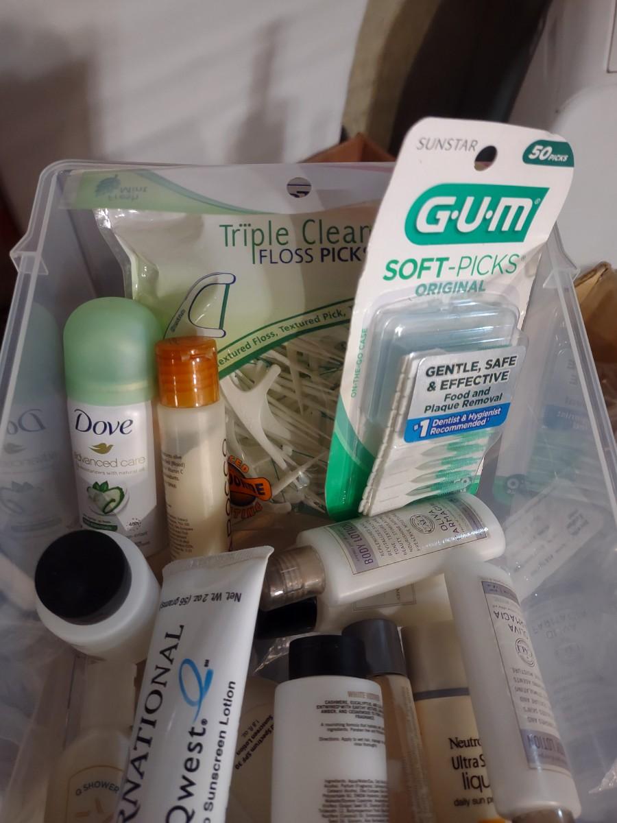 TRAVEL SIZE HYGIENE, FLOSS PICKS, DOVE DEODORANT, HAND LOTION AND MORE!