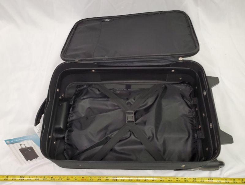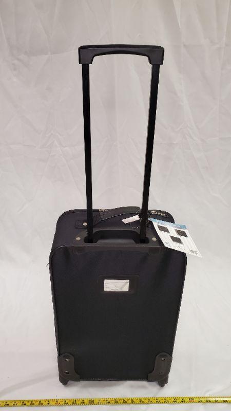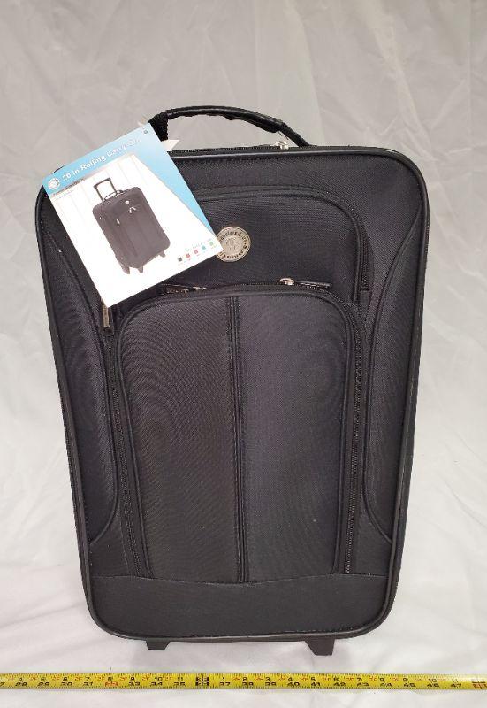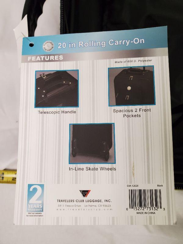 New with tags, this Travelers Club suitcase has a retractable handle and wheels, new condition.