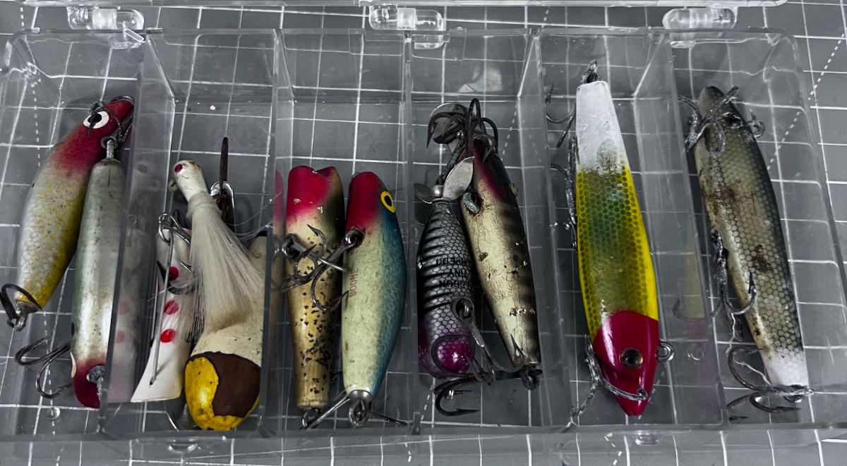 Tray full of Antique Fishing Lures