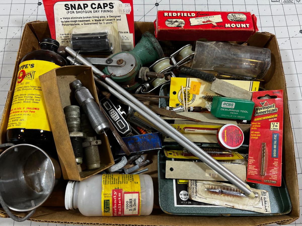 Tray Full of Gun Reloading & Cleaning Items